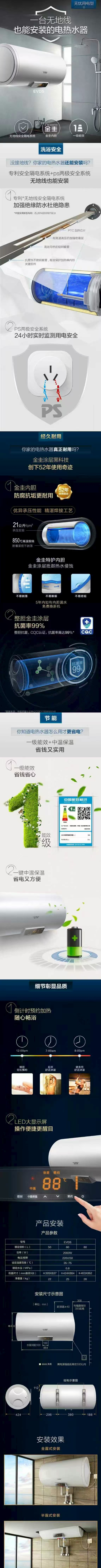 史密斯(A.O.SMITH)E60VDS 壁挂式电热水器 60L 白灰色(台)