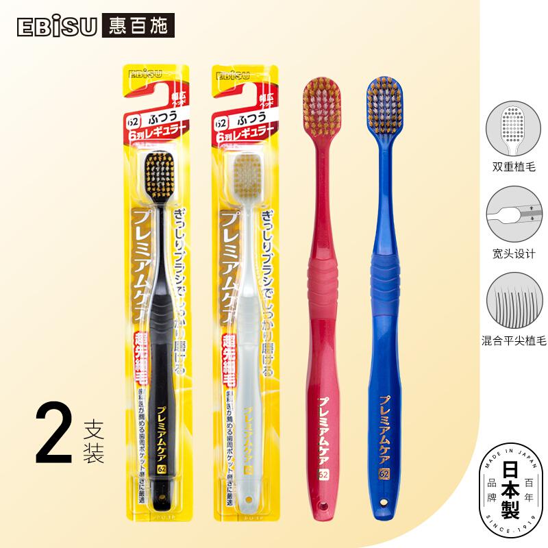 惠百施(EBISU)日本进口宽头牙刷6列48孔成人中毛牙刷 2支装(单位:组)
