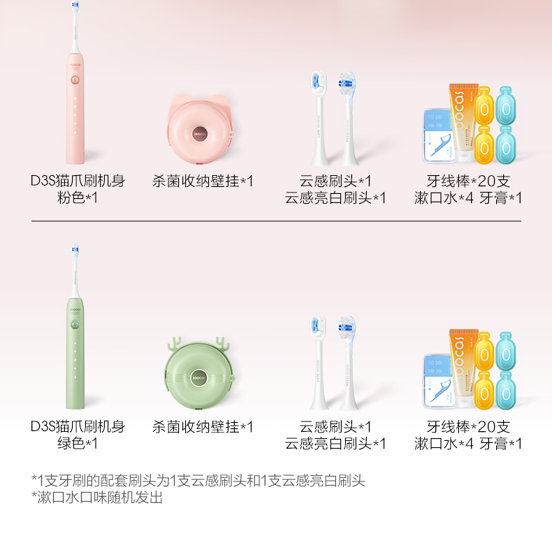 商品标题:素士素士D3S猫爪电动牙刷粉电动牙刷(单位:个)