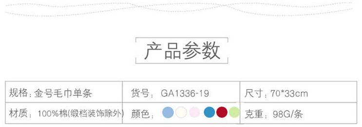 商品标题:金号赤金GA1336-19提缎毛巾70*33cm98g(条)