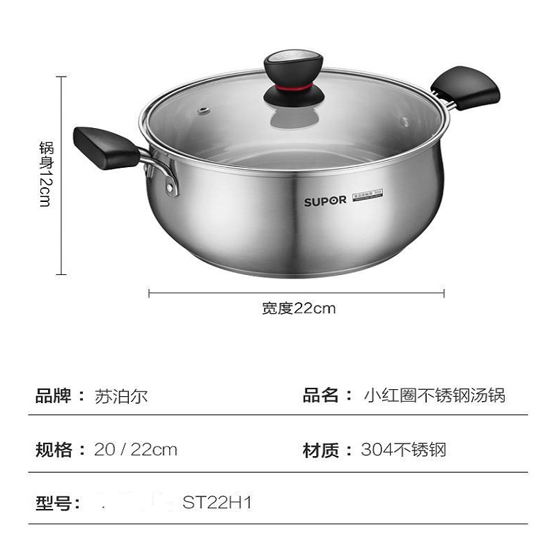 商品标题:苏泊尔 ST22H1 小红圈不锈钢时尚系列汤锅22CM(单位:口)