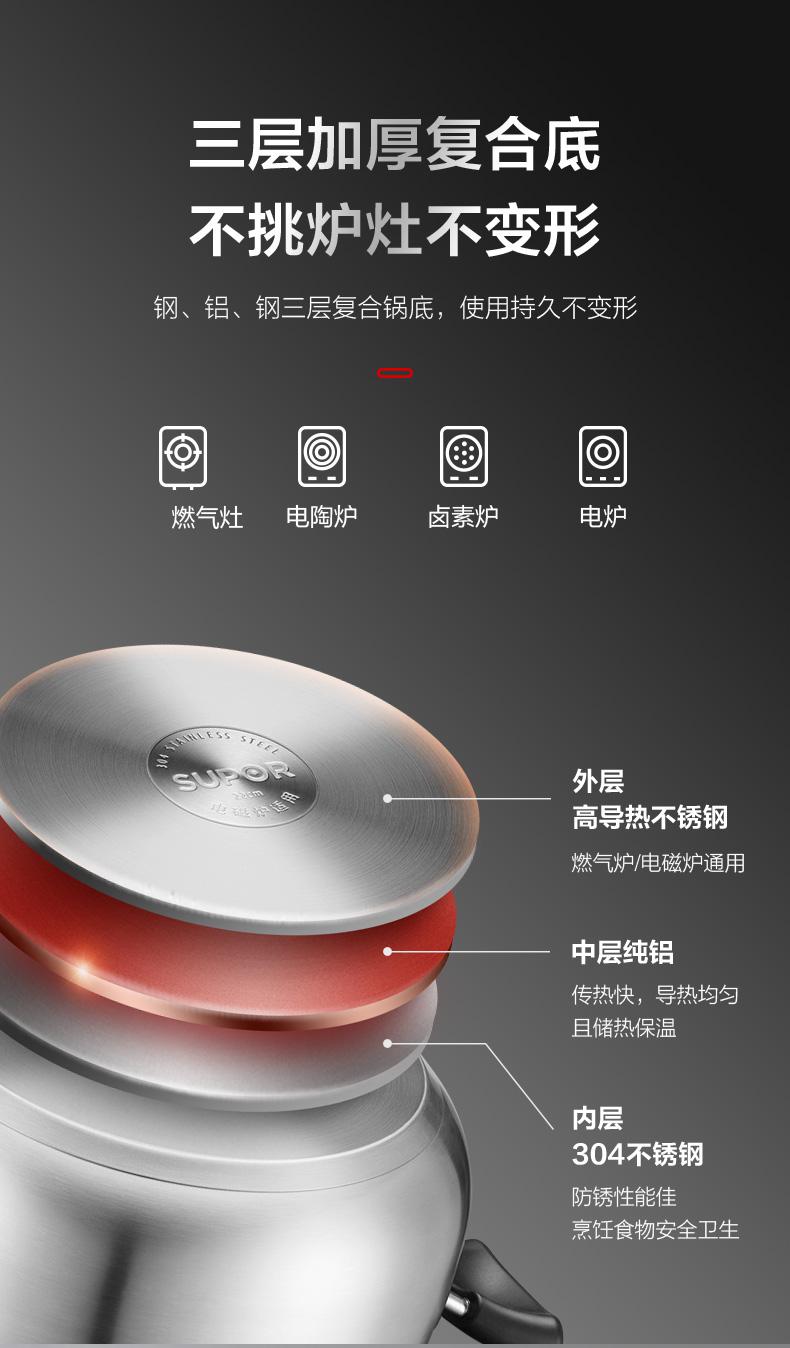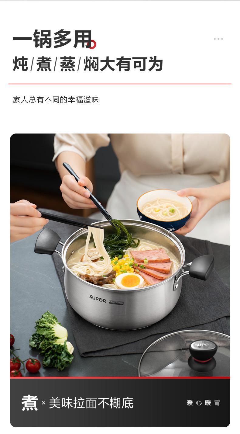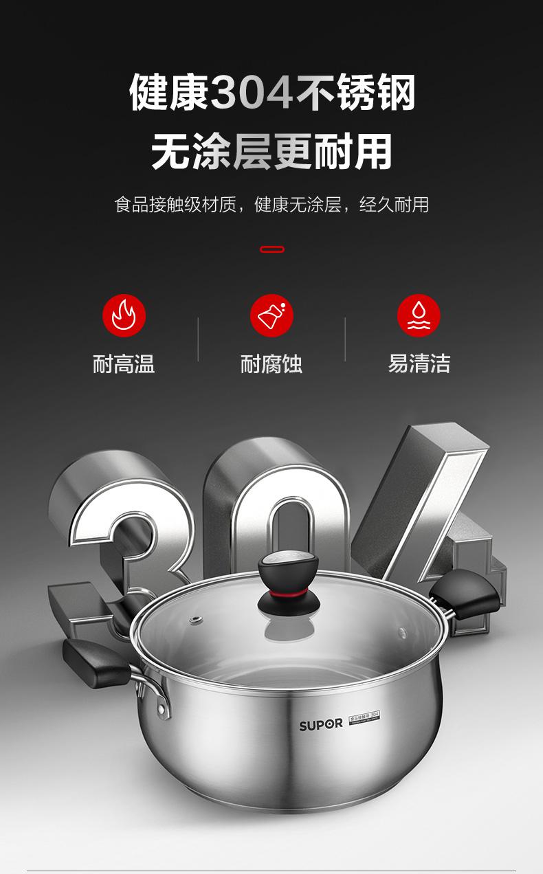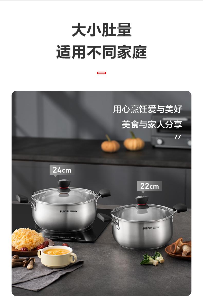 苏泊尔SUPOR 汤锅ST22H1 复底小红圈304不锈钢奶锅22cm(单位:套)
