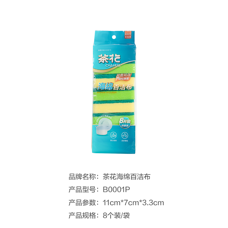 茶花(CHAHUA)B0001P海绵百洁布(特惠8个装)11*7*3.3(单位:袋)