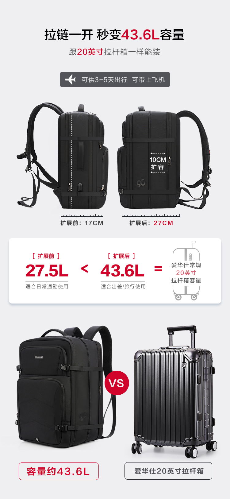 爱华仕双肩包17.3寸电脑包OCB4480黑色(单位:个)