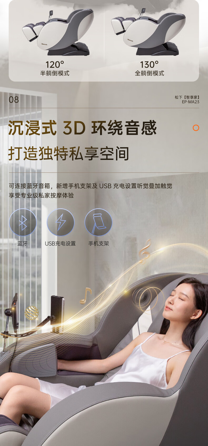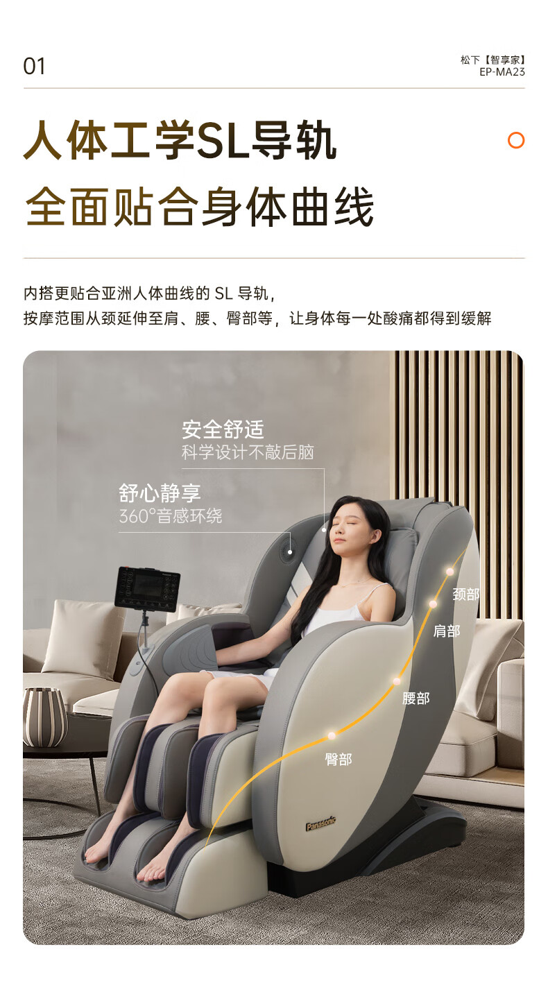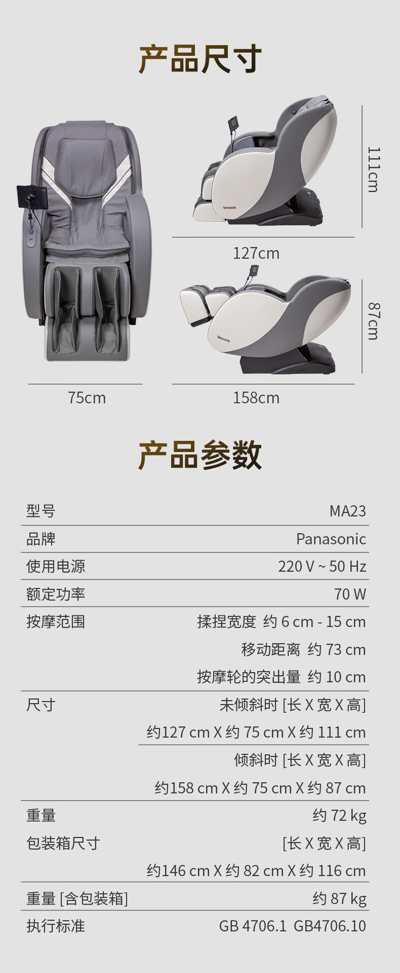 松下(Panasonic)EP-MA23-H492 按摩椅淡漠灰(台)