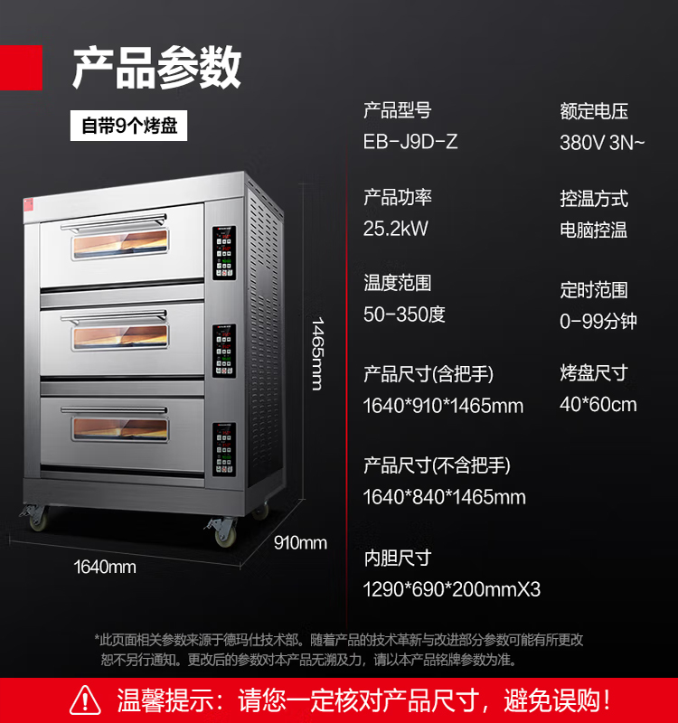 商品标题: 德玛仕(DEMASHI)EB-J9D-Z 商用烤箱三层九盘380V(单位:台)