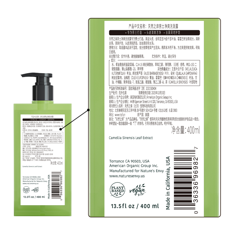 商品标题:天然之扉男士净爽洗发露 400ml(单位:瓶)