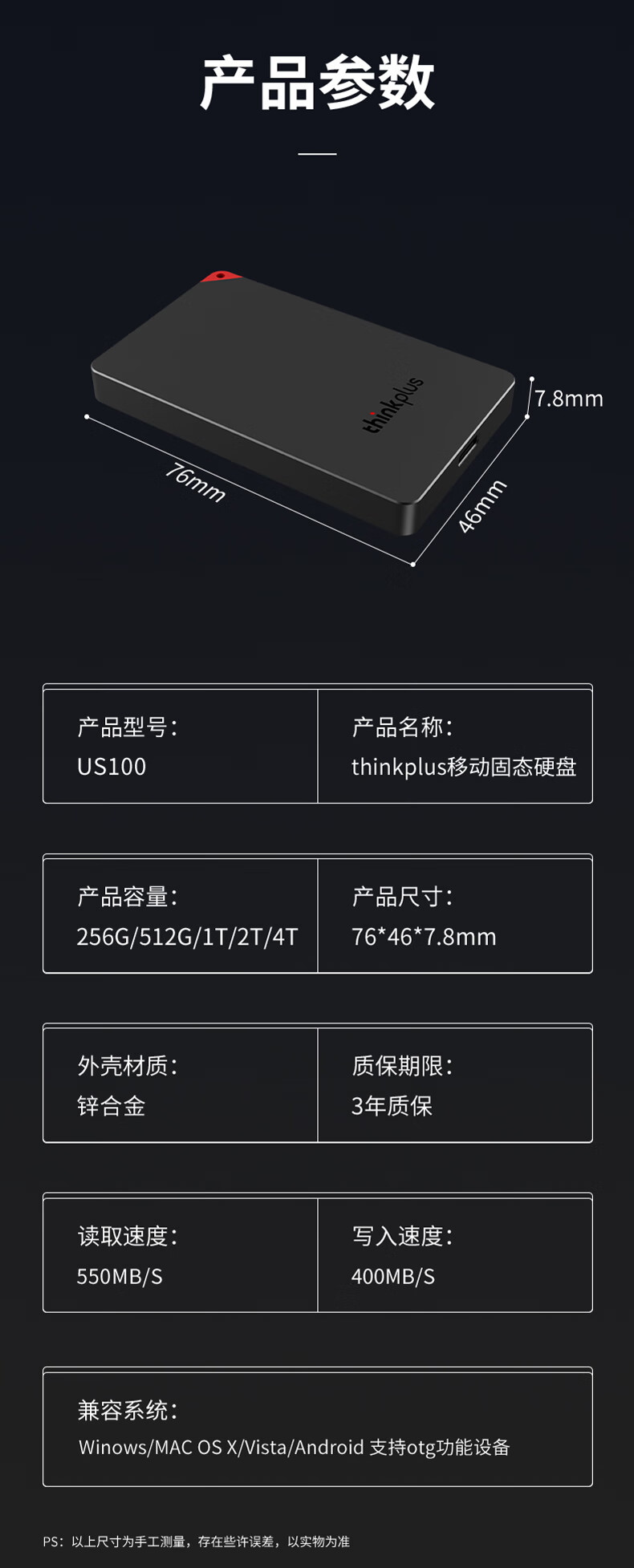 产品尺寸:长76mm;宽46mm;高7.8mm