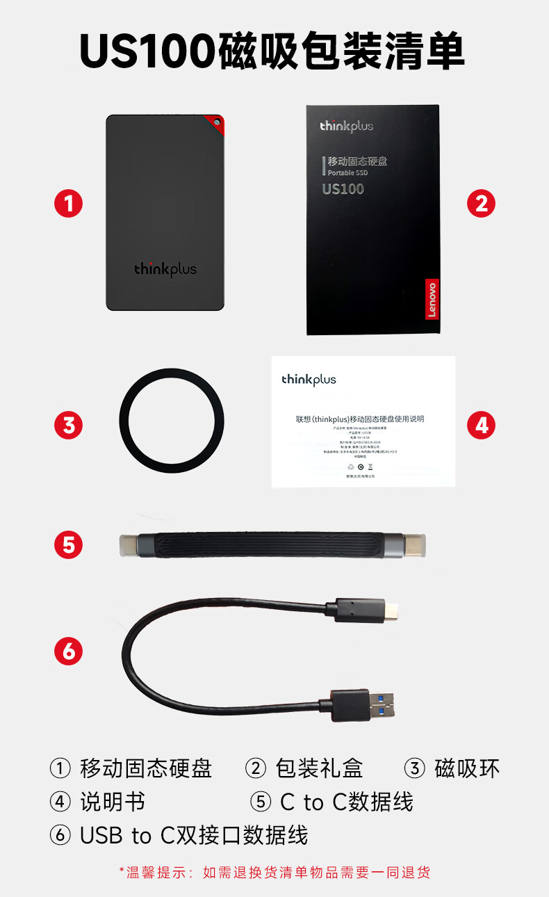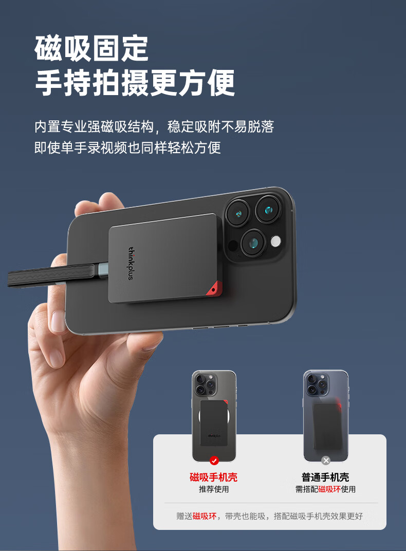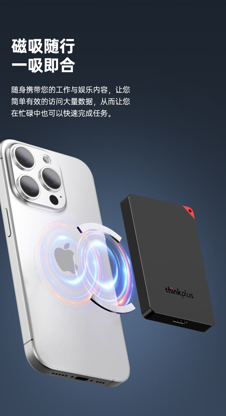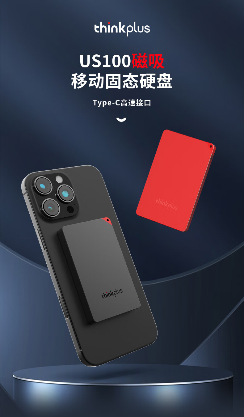 联想(Lenovo)US100 磁吸移动固态硬盘 2TB 黑色 Type-C/USB3.1(单位:个)