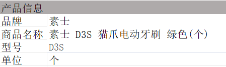 商品标题:素士素士D3S猫爪电动牙刷绿电动牙刷(单位:个)
