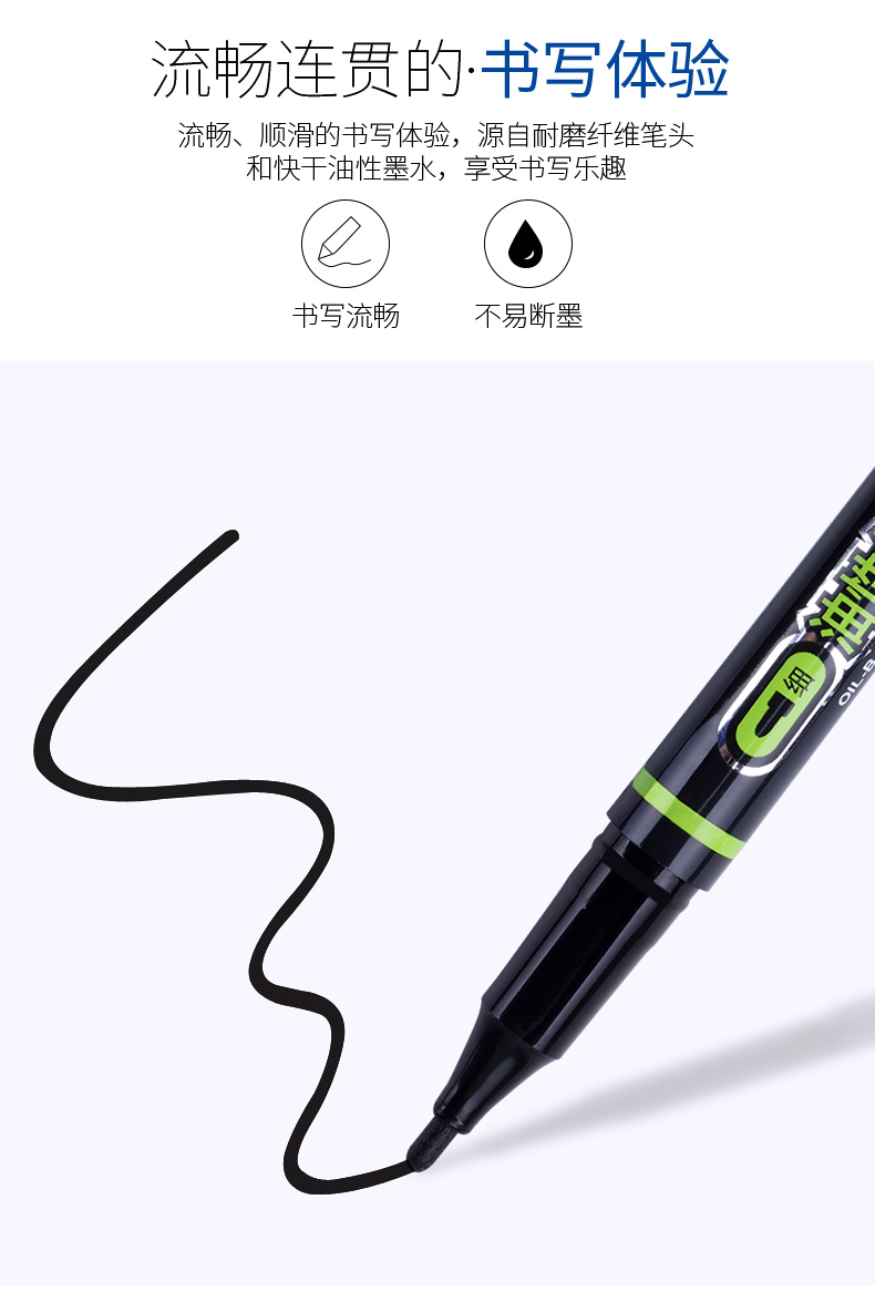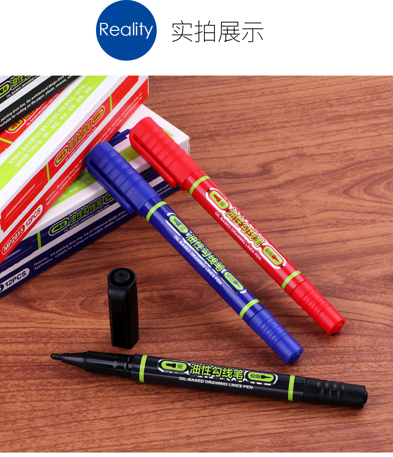 商品标题:宝克(BAOKE)MP2915 0.5/1.0mm双笔头油性勾线笔记号笔 黑色 12支/盒(单位:盒)