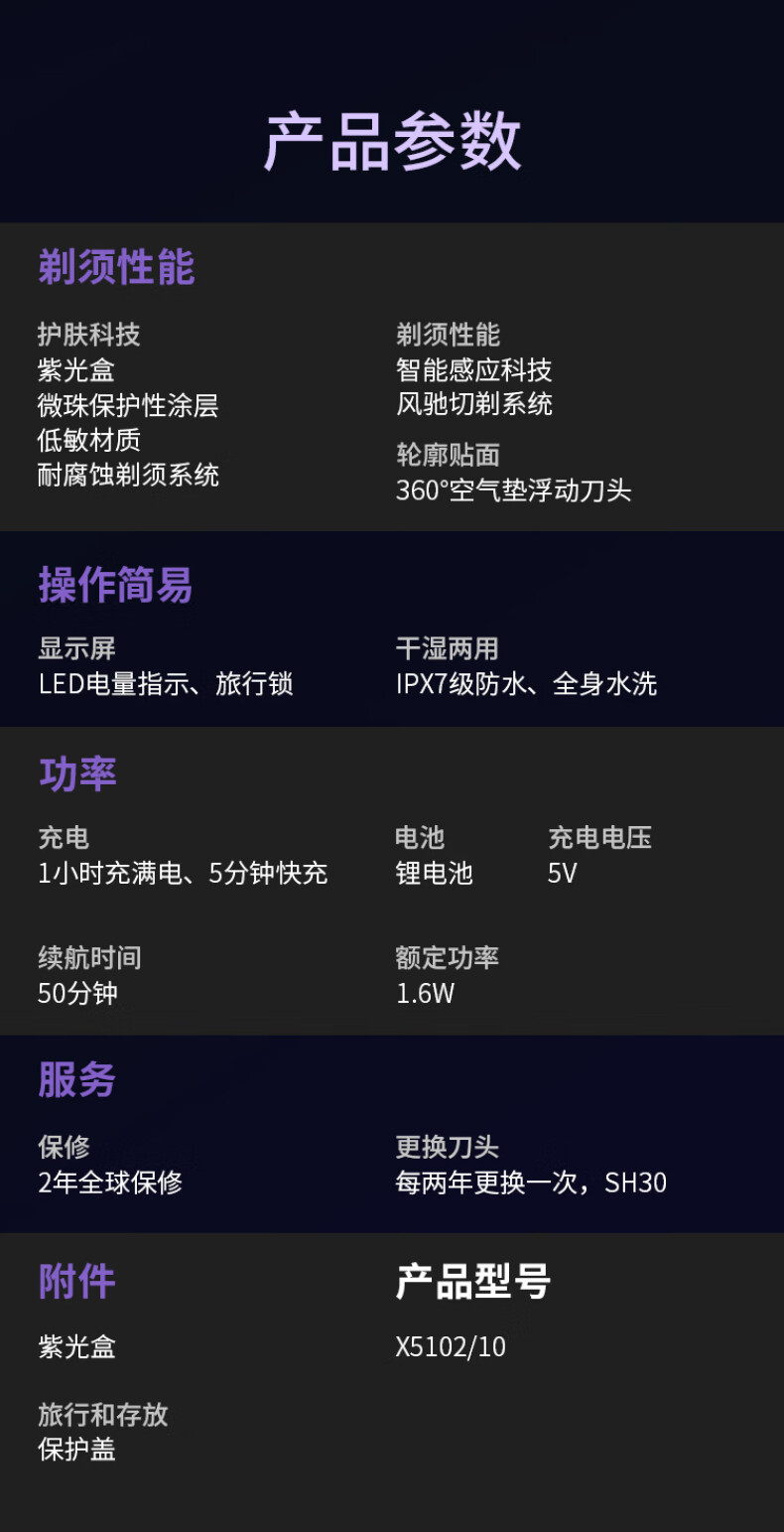 飞利浦(PHILIPS)剃须刀电动剃胡刀三刀头X5102(台)
