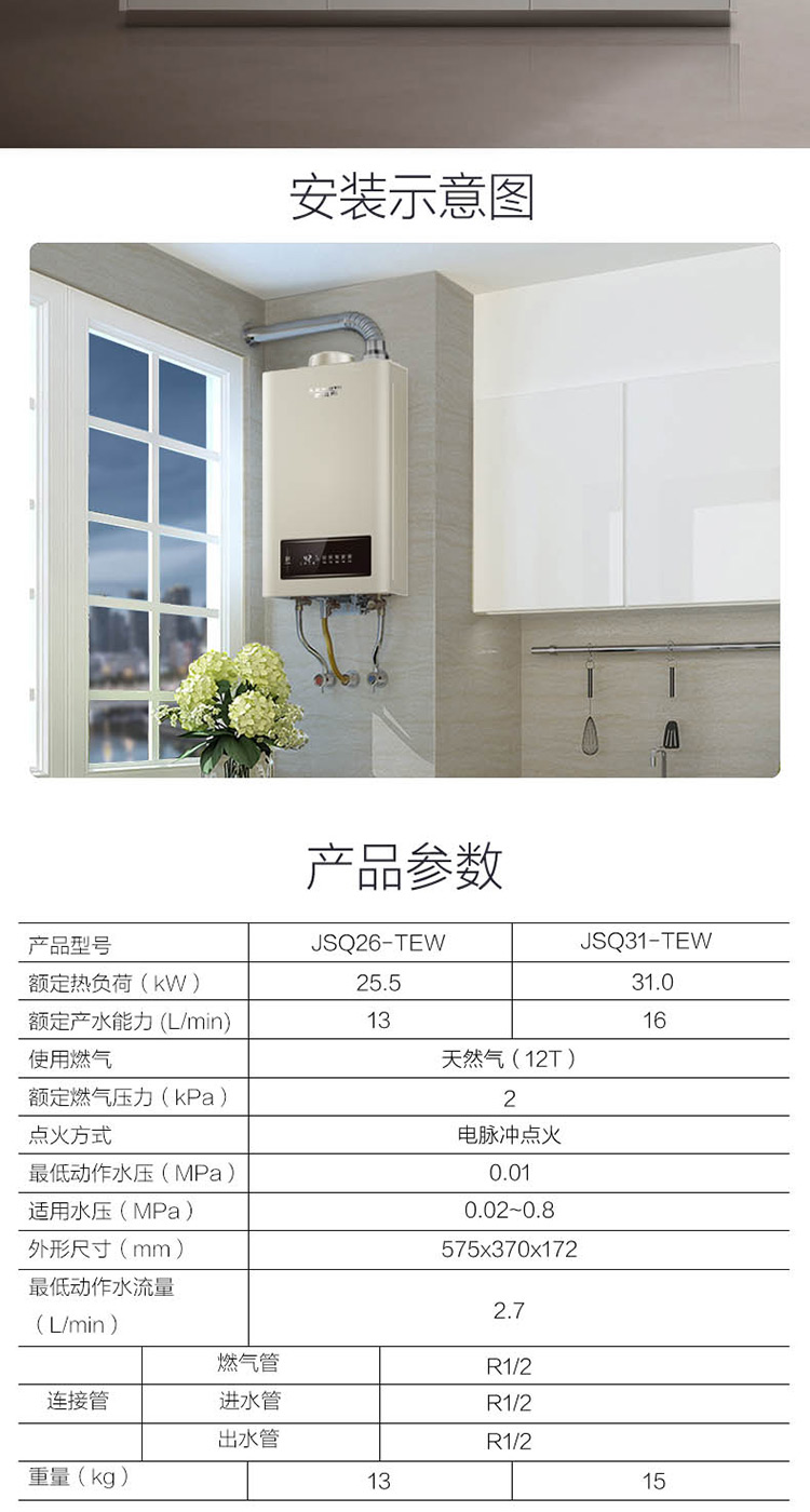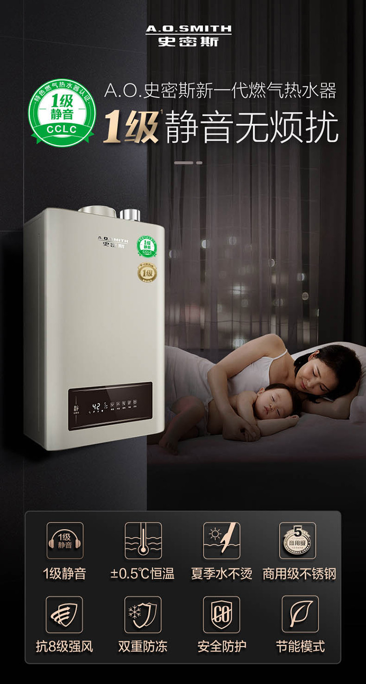 商品标题:史密斯(A.O.SMITH)16升燃气热水器 1级静音 不锈钢换热器更耐用 恒温大水量 抗风防冻 JSQ31-TEW(天然气)雅金色(单位:台)