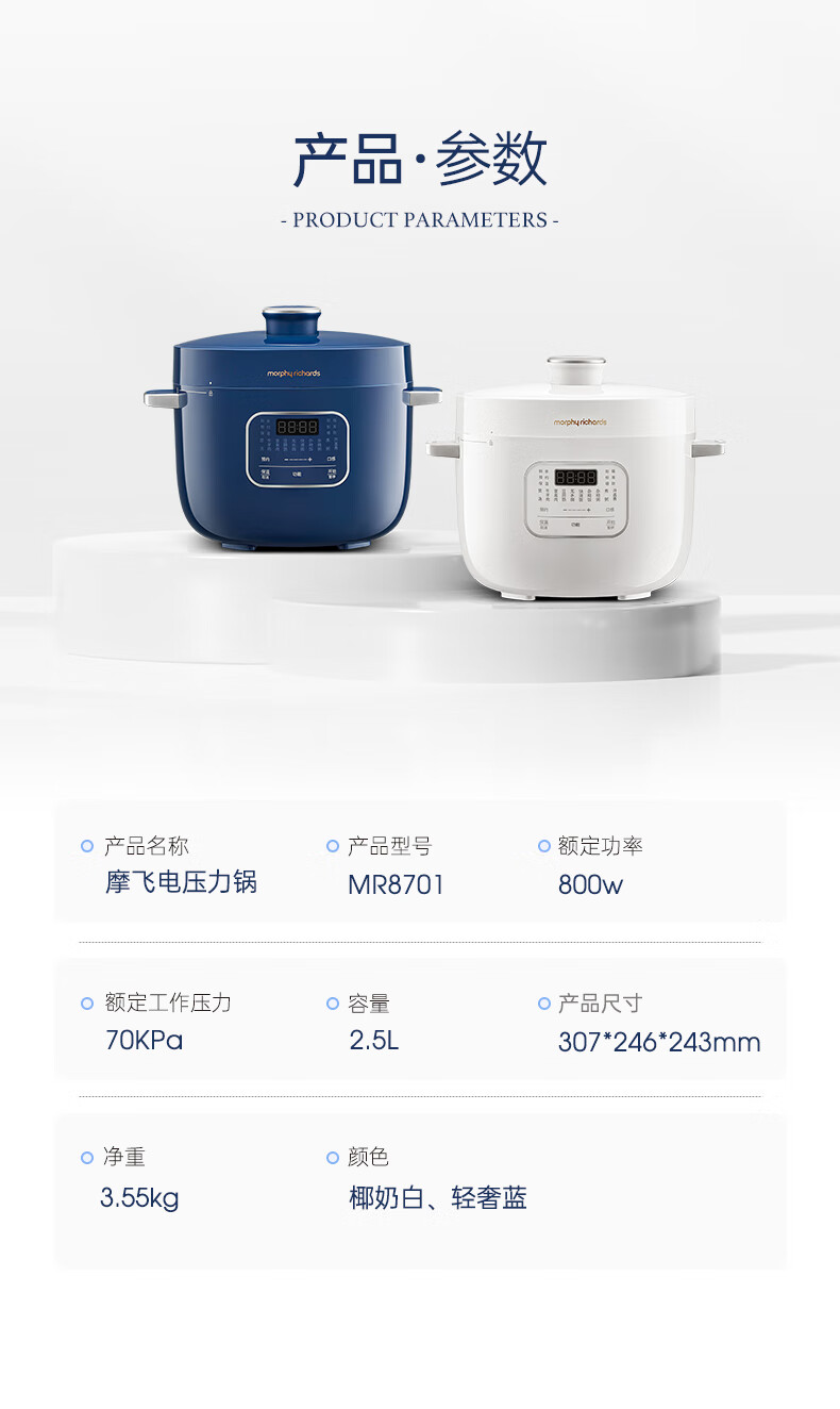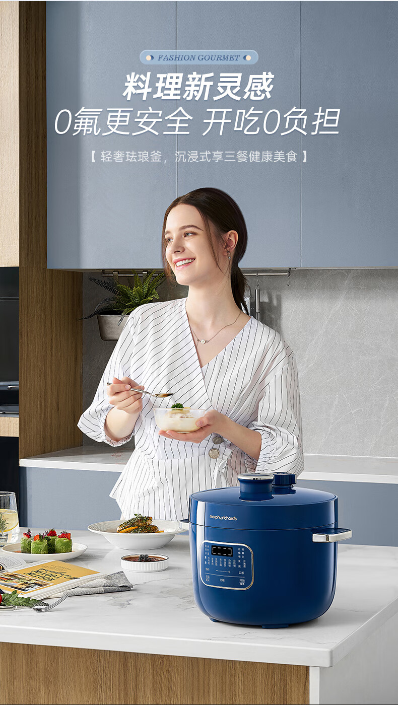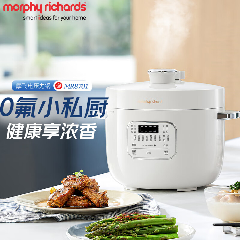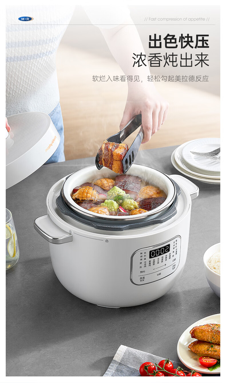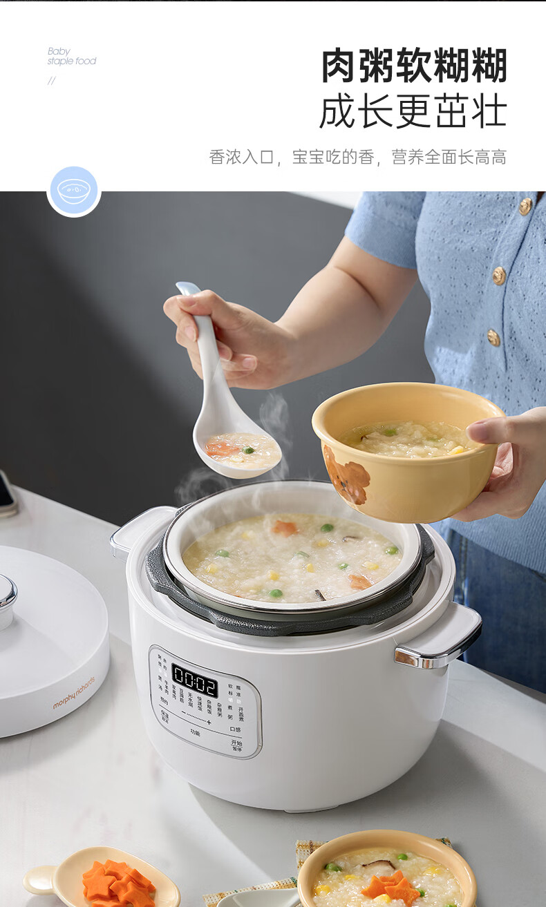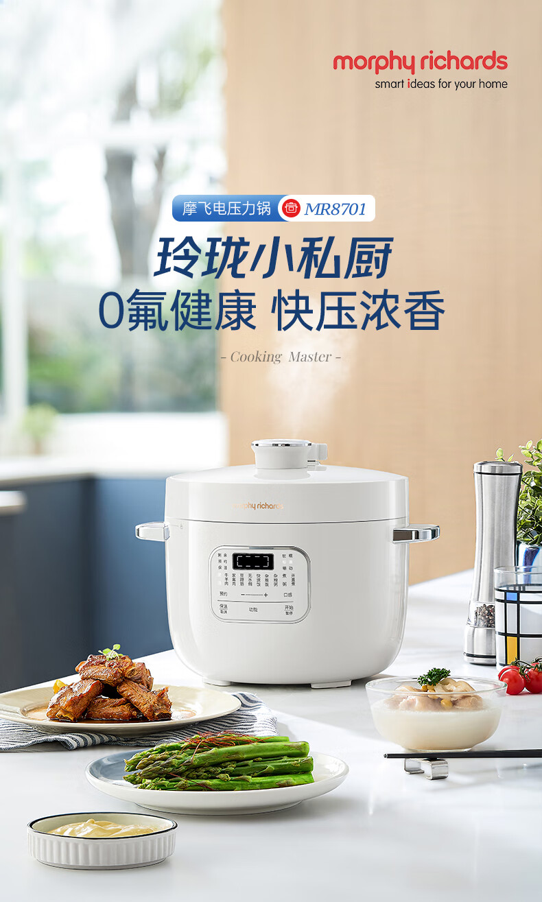 摩飞电器(Morphyrichards)电压力锅 电高压锅电饭锅电饭煲 家用2.5L迷你珐琅釜多功能煲汤锅电火锅电煮锅MR8701白(单位:台)
