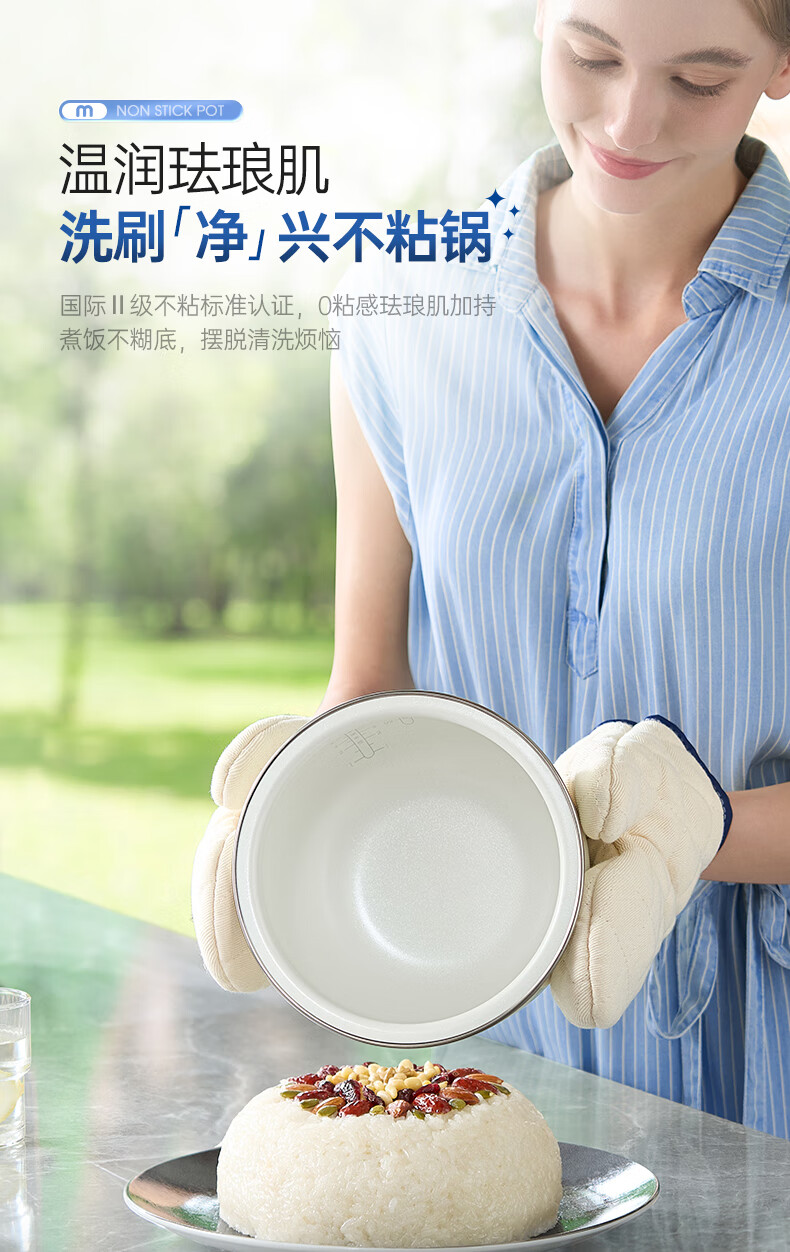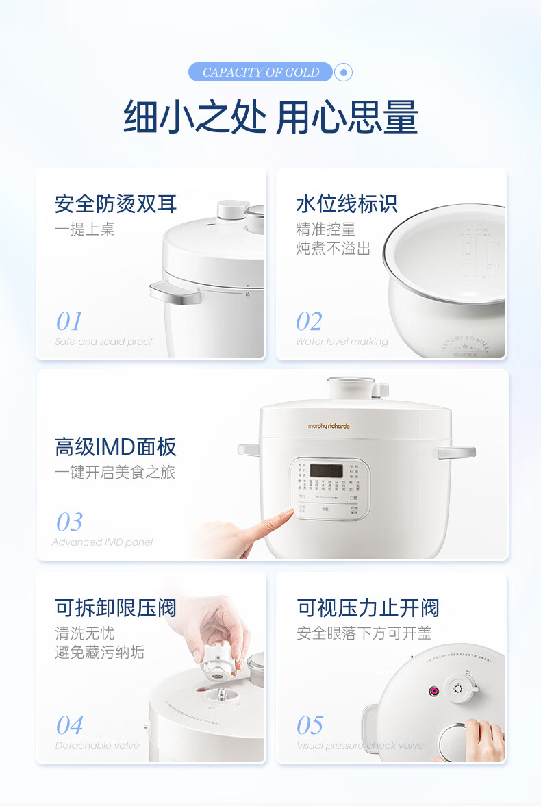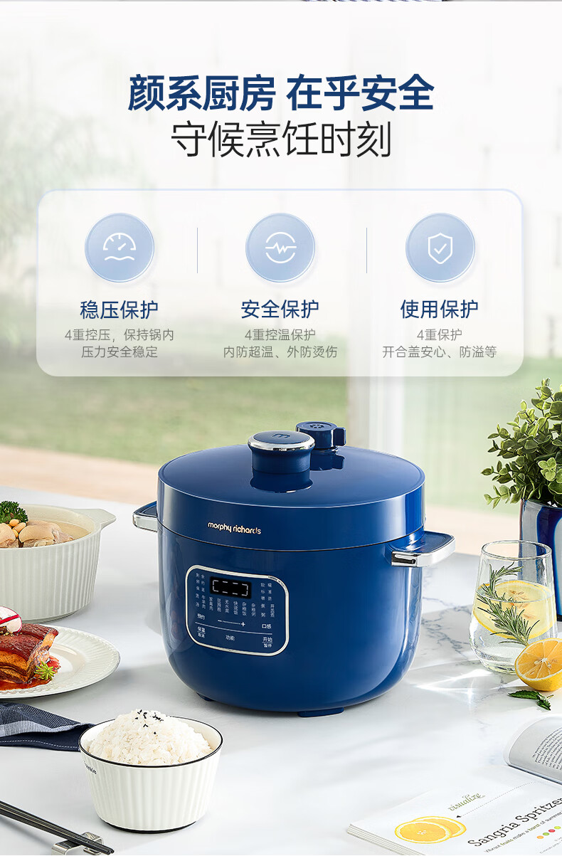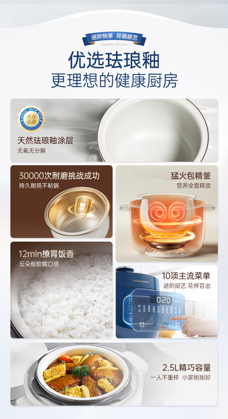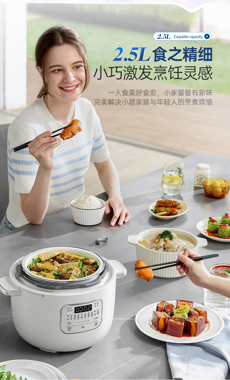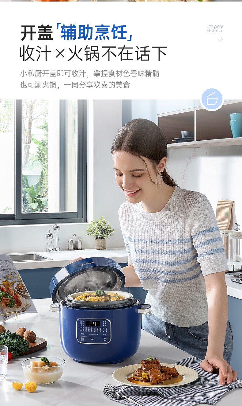 摩飞电器(Morphyrichards)电压力锅 电高压锅电饭锅电饭煲 家用2.5L迷你珐琅釜多功能煲汤锅电火锅电煮锅MR8701白(单位:台)