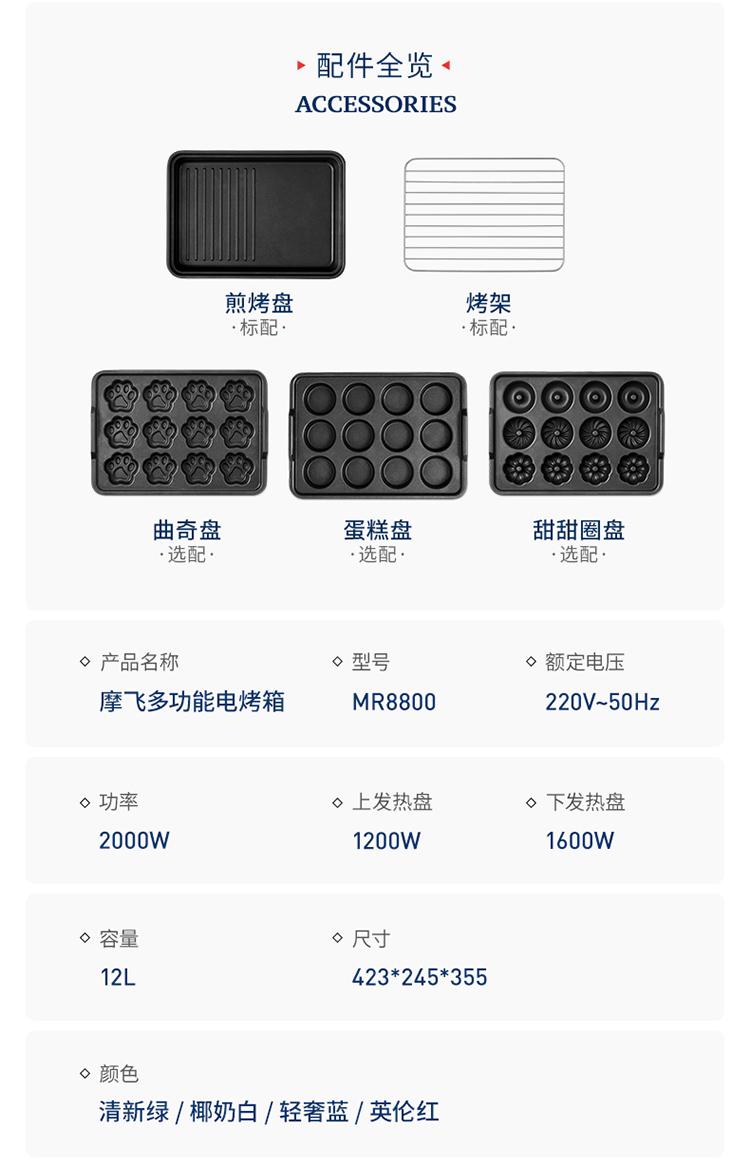 商品标题:摩飞电器(Morphyrichards)MR8800白 电烤箱多功能煎烤一体独立控温 12L(单位:台)