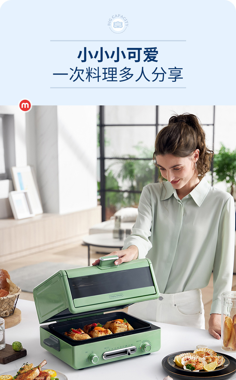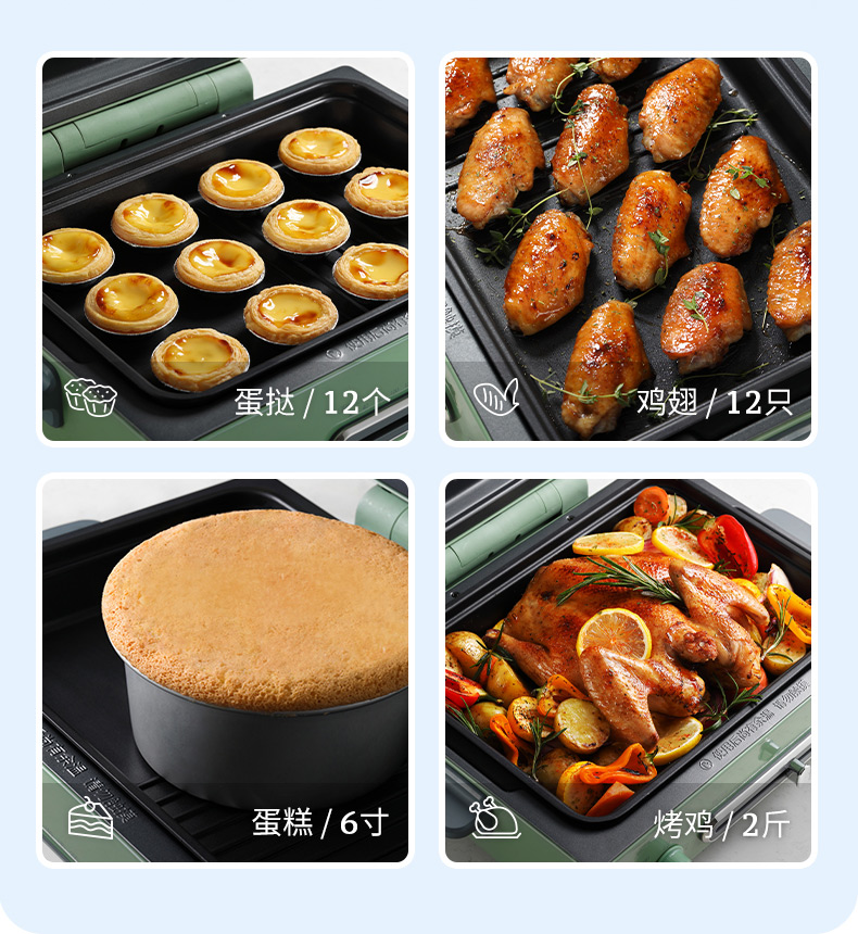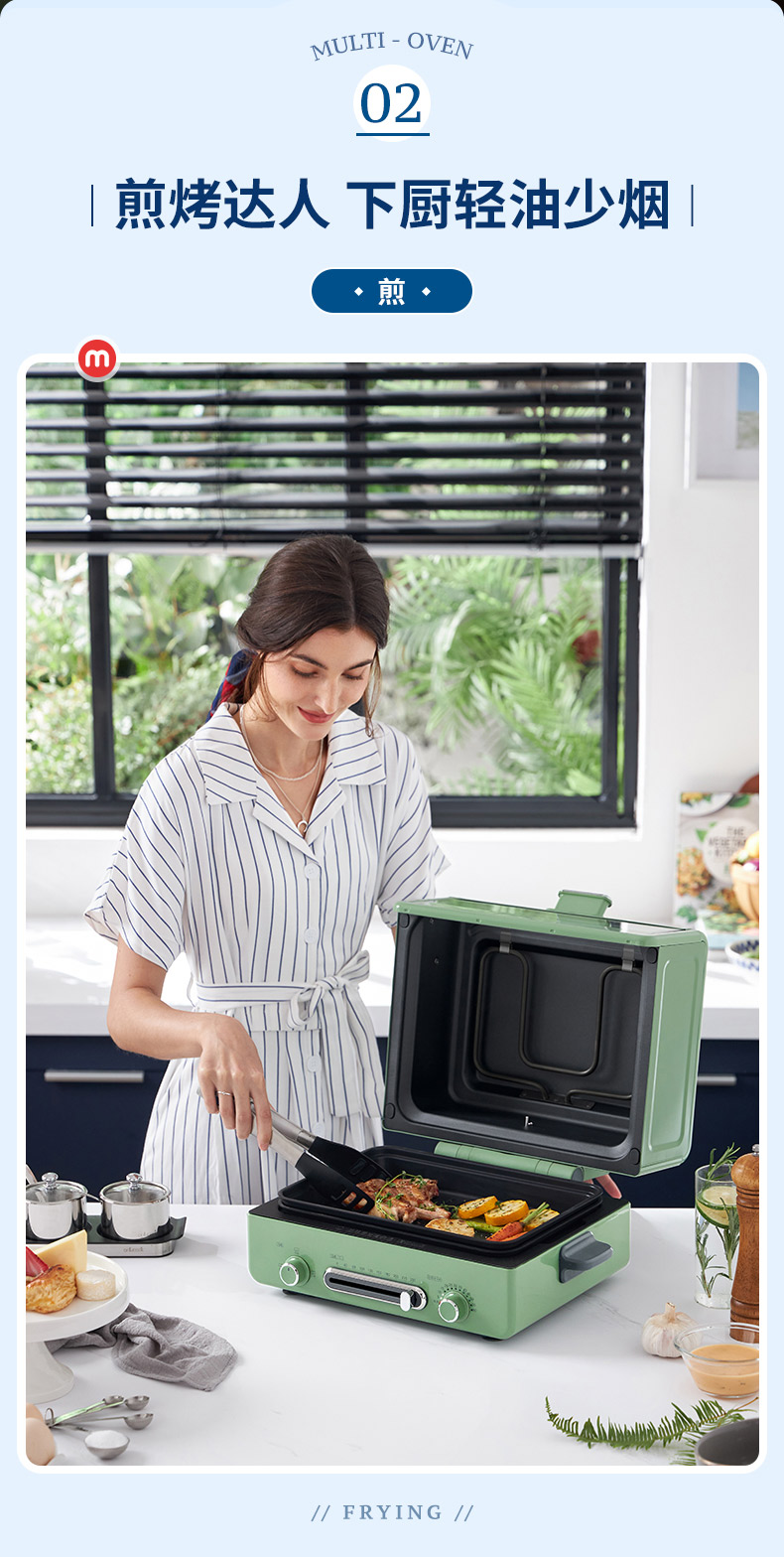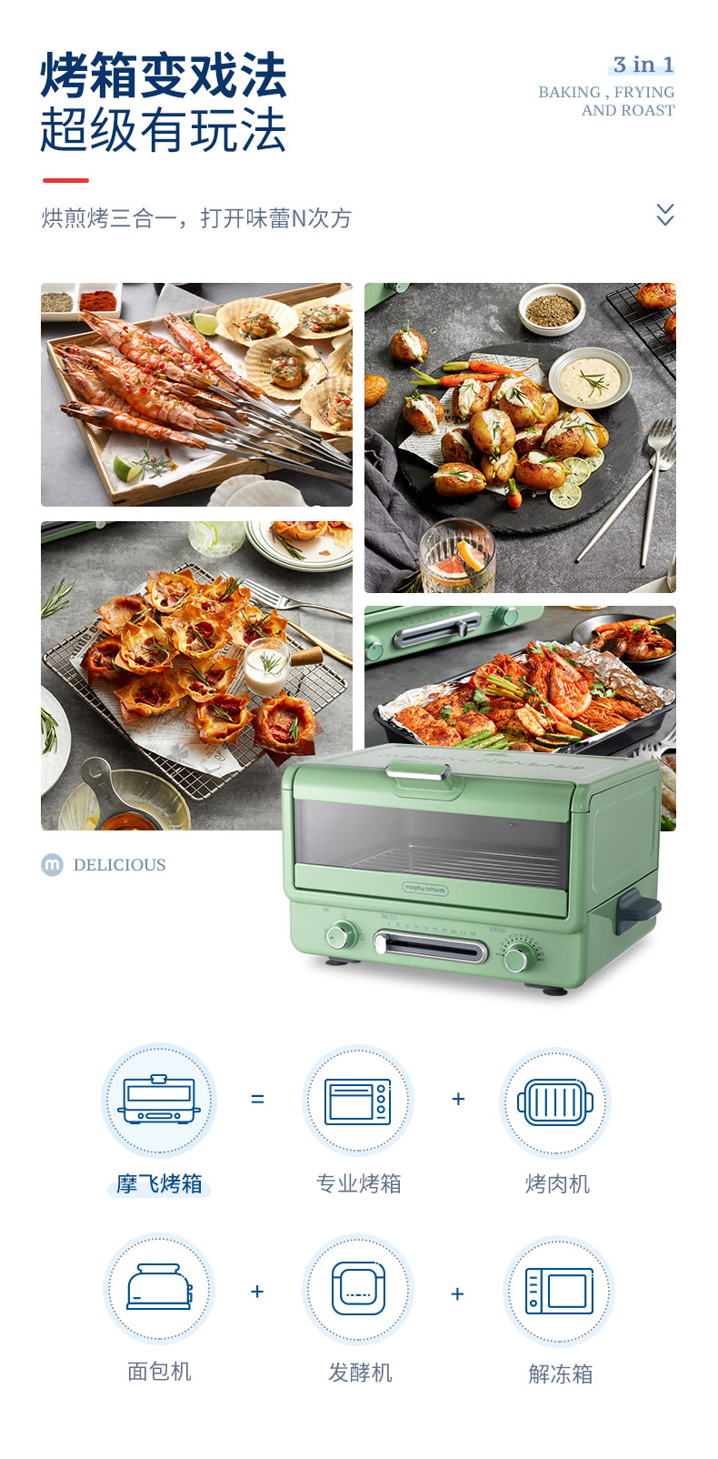 商品标题:摩飞电器 MR8800 电烤箱煎烤一体多功能锅台式烧烤机蛋糕烤箱(台)清新绿