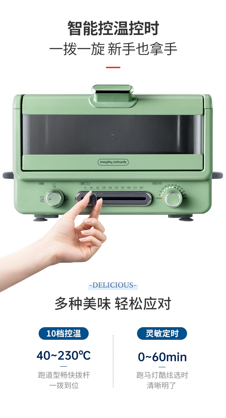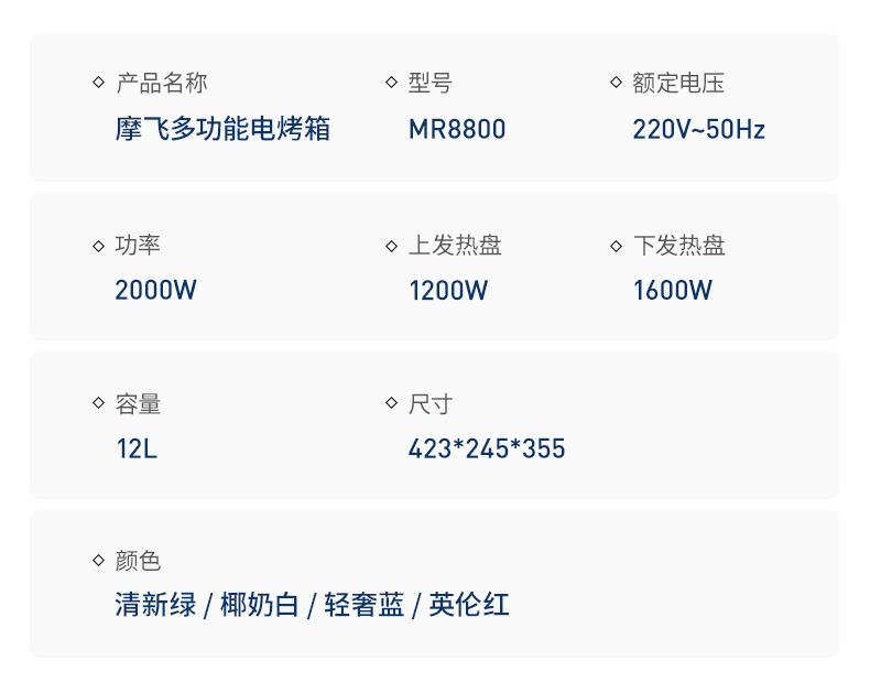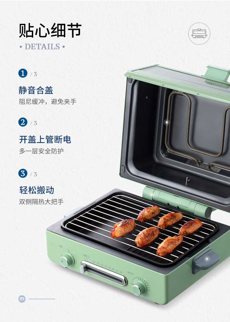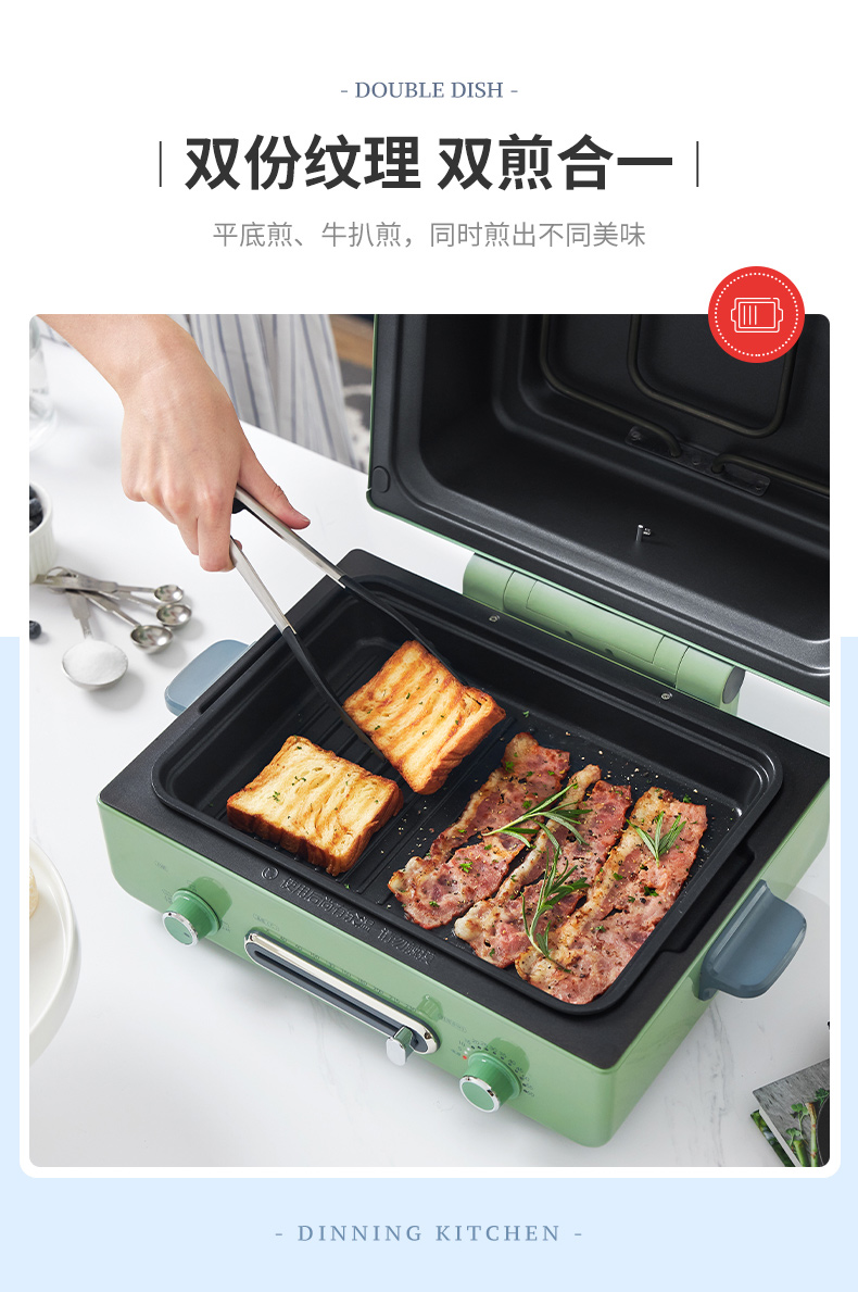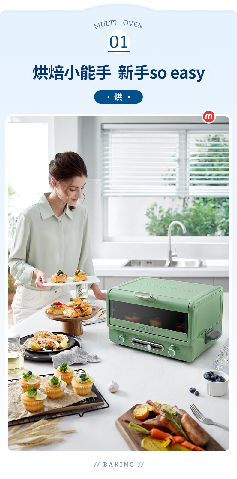 商品标题:摩飞电器 MR8800 电烤箱煎烤一体多功能锅台式烧烤机蛋糕烤箱(台)清新绿