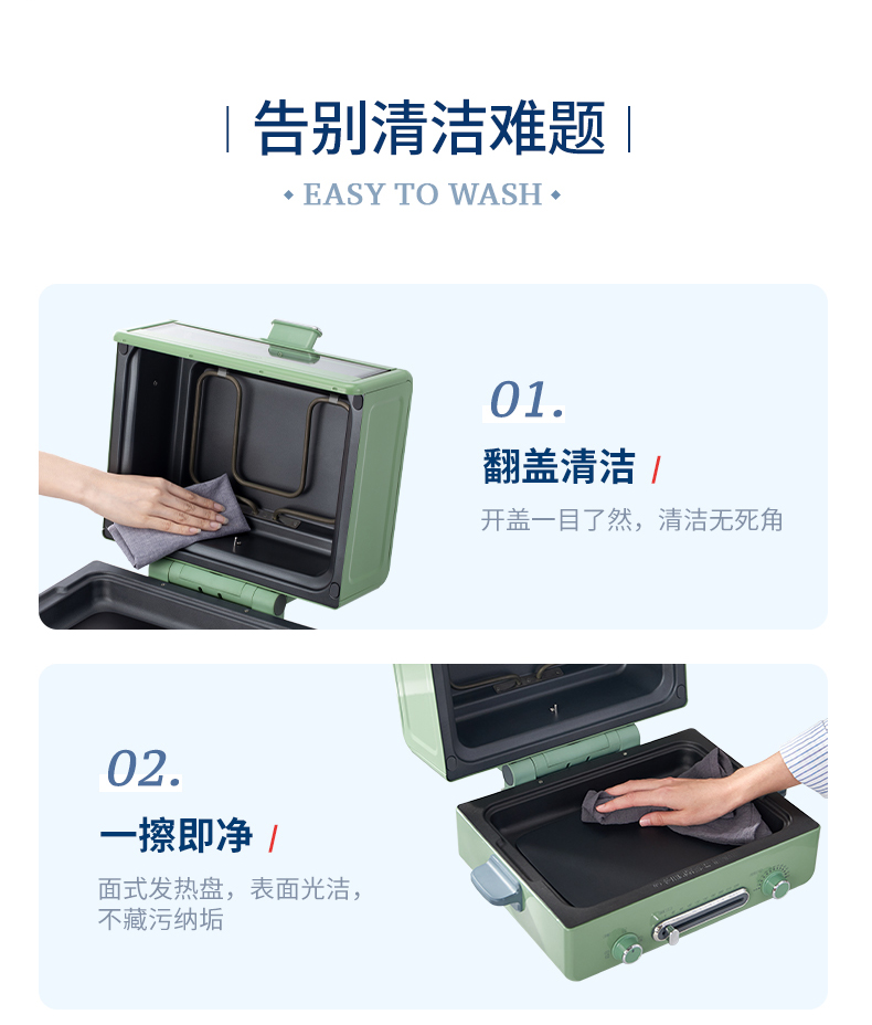 摩飞电器 MR8800 电烤箱煎烤一体多功能锅台式烧烤机蛋糕烤箱(台)清新绿