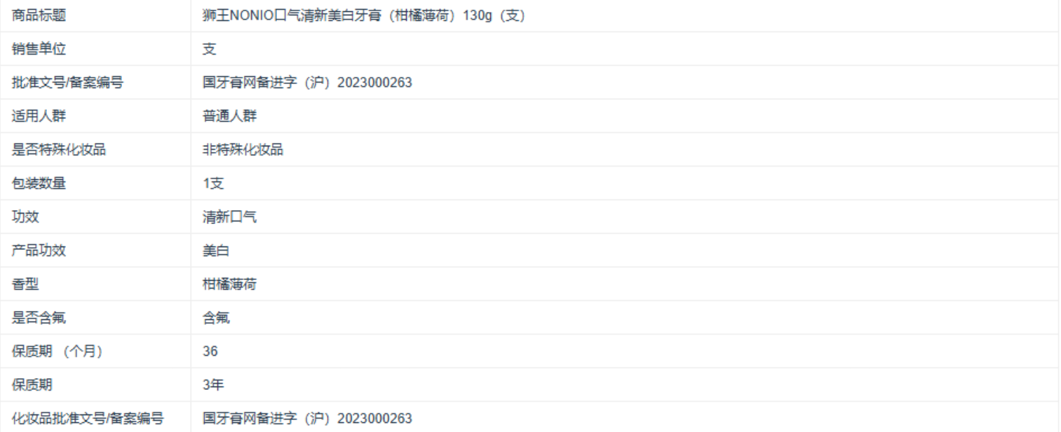 商品标题:狮王NONIO口气清新美白牙膏(柑橘薄荷)130g(支)