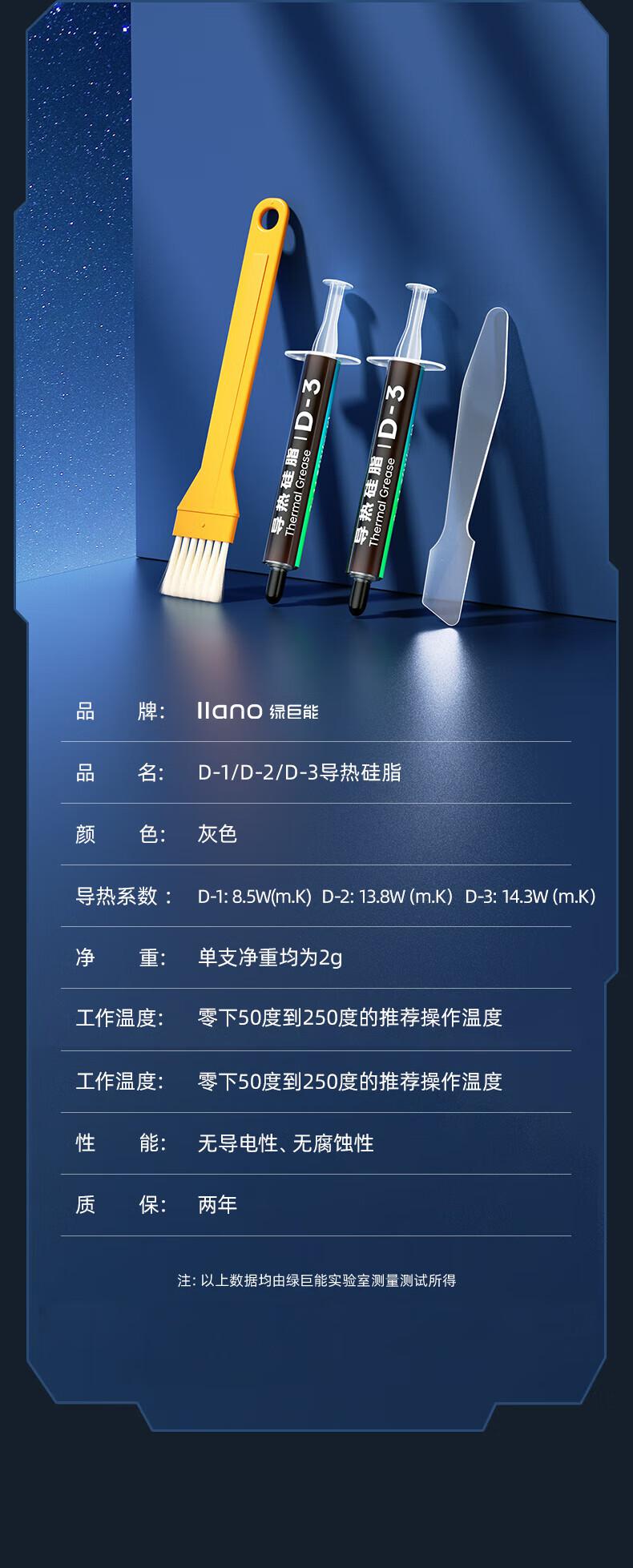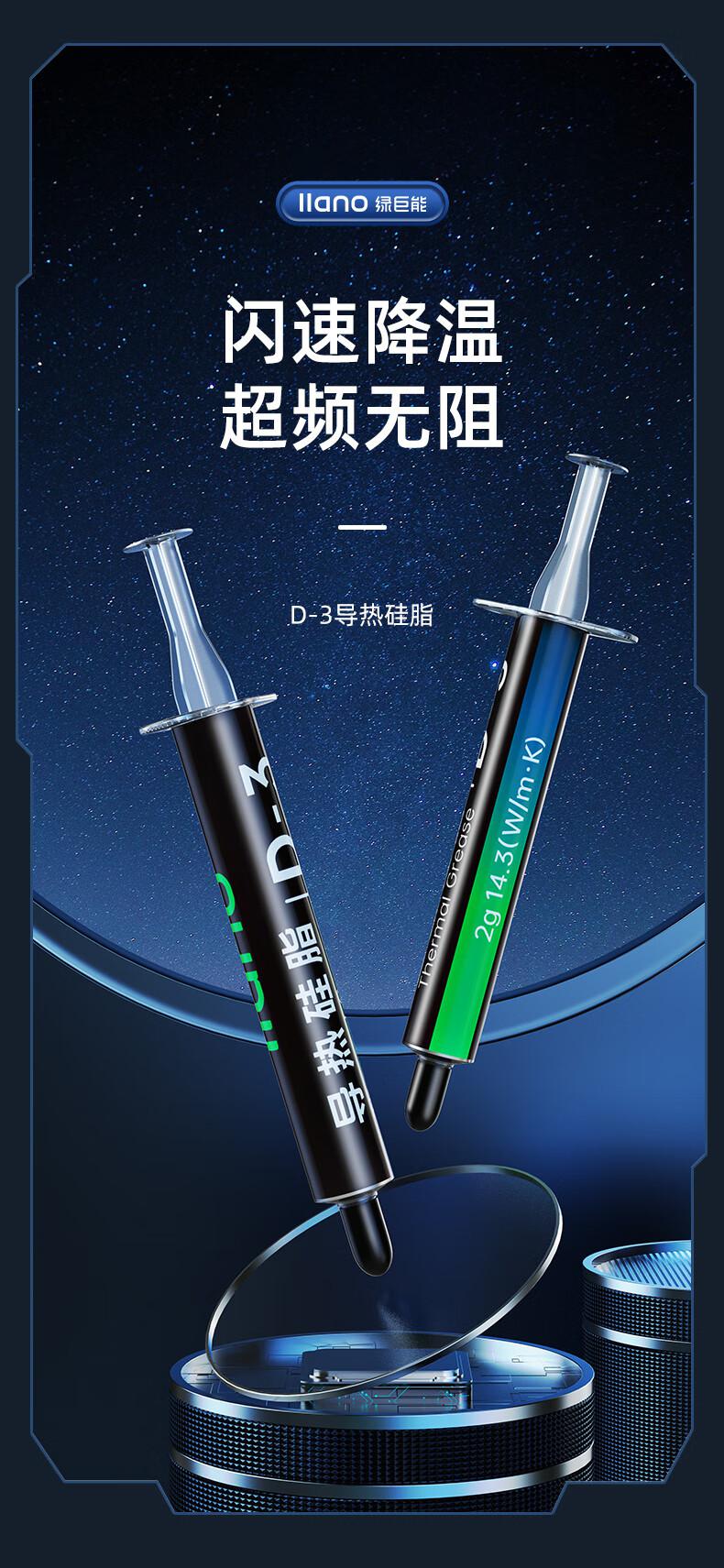 商品标题:绿巨能(llano)硅脂 散热硅脂 笔记本CPU导热液态金属硅脂导热膏 导热系数14.3(W/m·K)2g*2支装//LJN-GZ005(个)