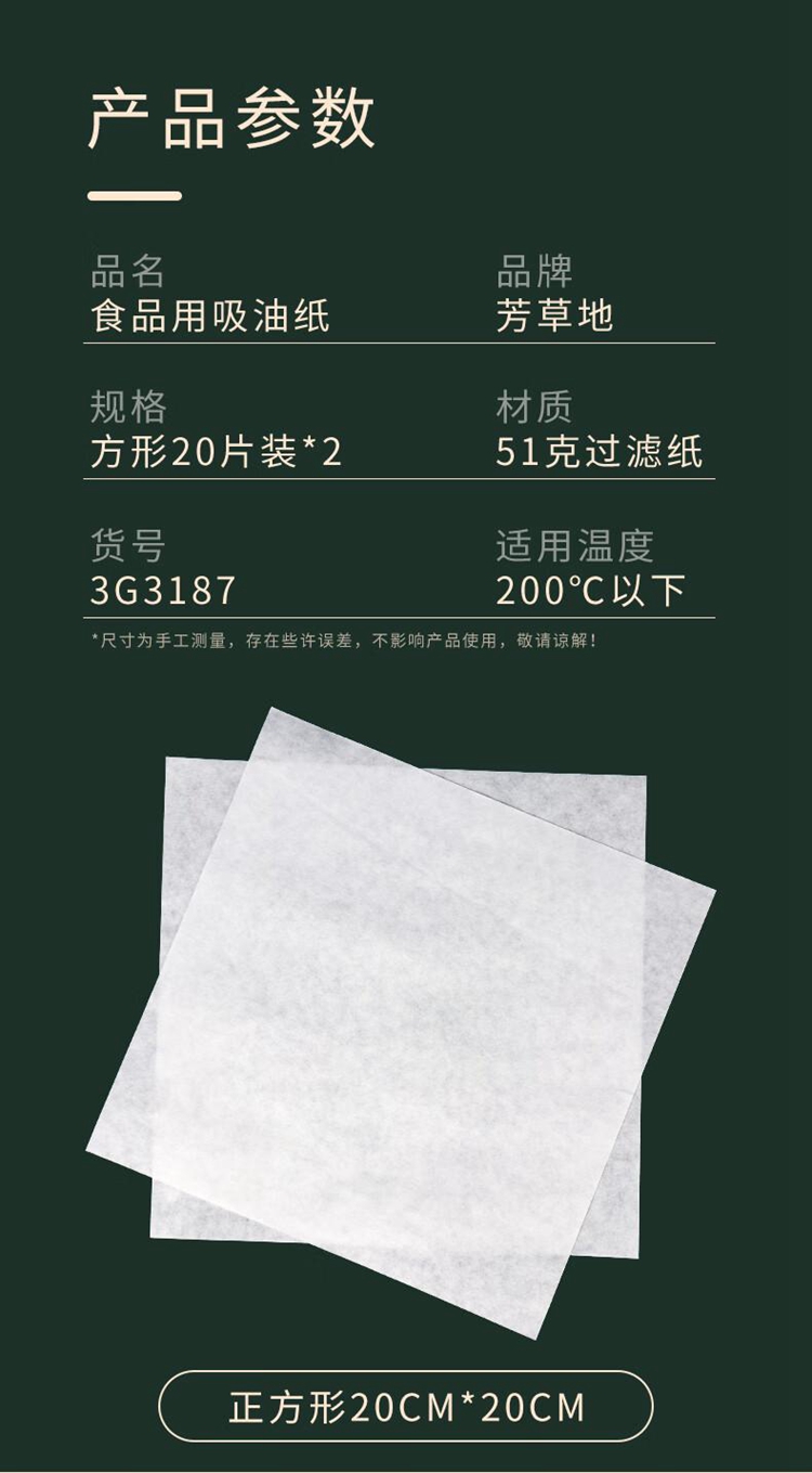芳草地 3G5597 一次性吸油纸 方形20cm*20cm 20张*2包(组)