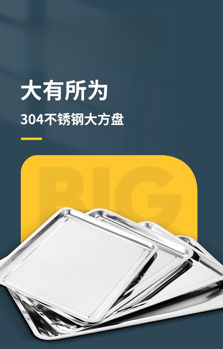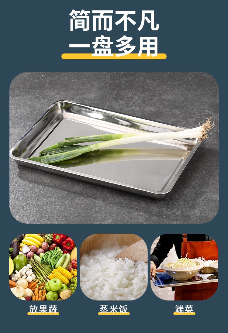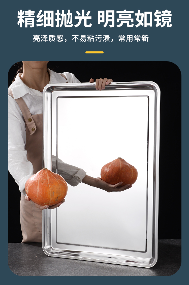 商品标题:谦星 QX-24101902F 304不锈钢特大方盘托盘长方形菜盘蒸饭盘 60x40x4.8cm 1个(个)