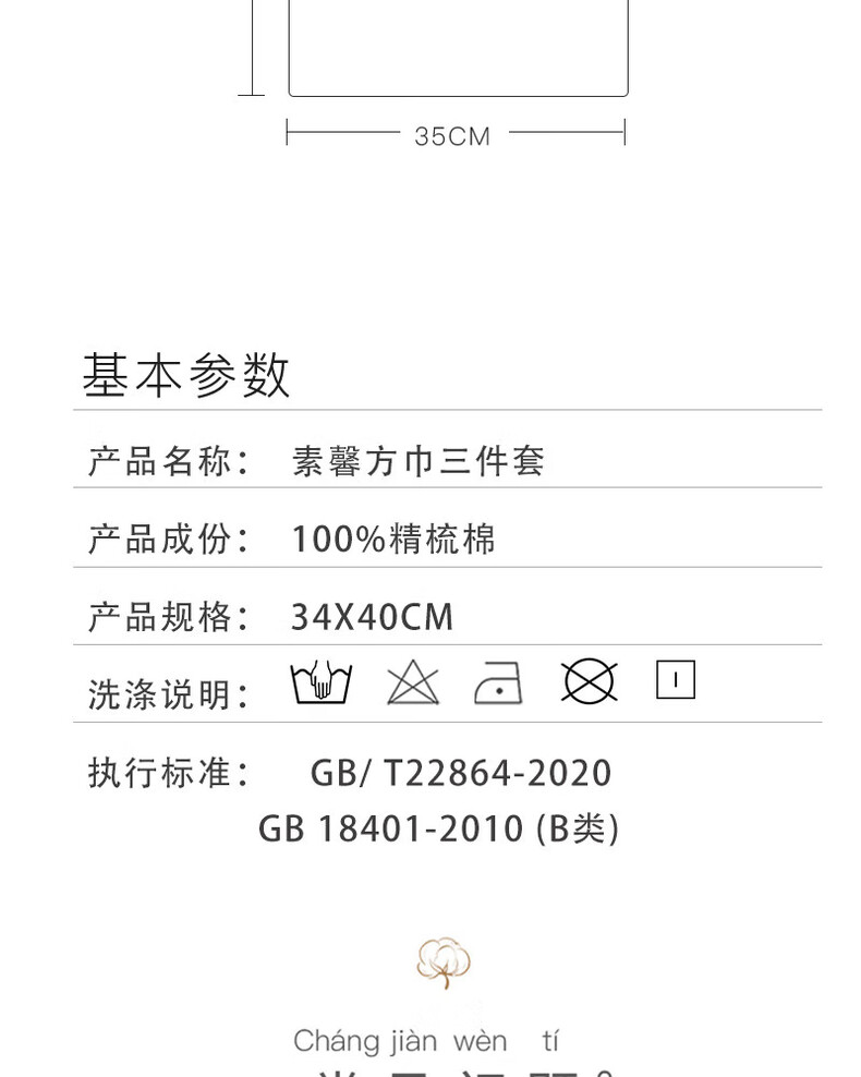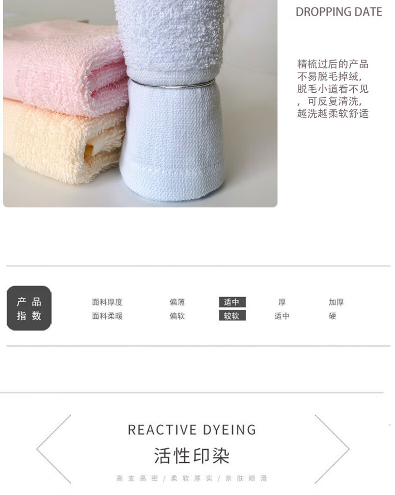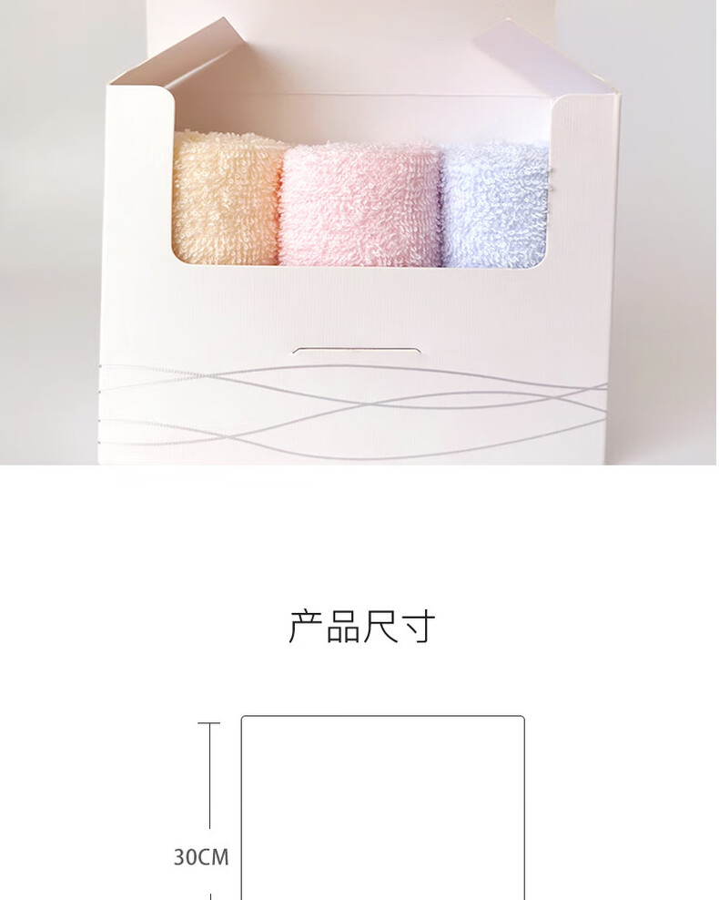 怡莲100%新疆棉素馨方巾3条装YLC03 34*40cm/条 (单位:盒)
