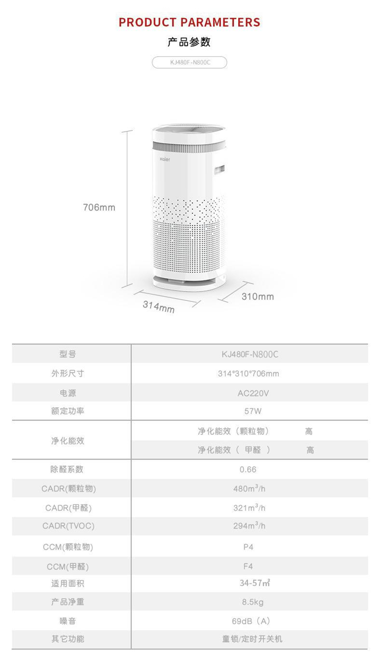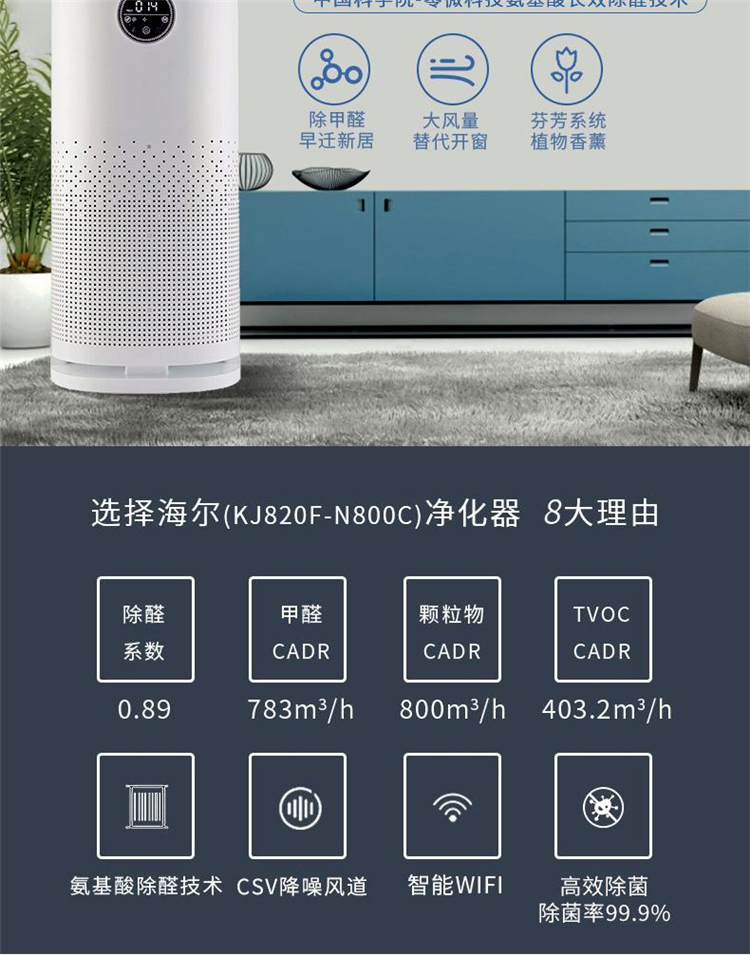 商品标题:海尔(Haier)KJ480F-N800C 空气净化器除醛型氨基酸除醛 远程操控