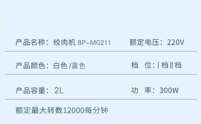 商品标题:豹牌BP-MG211绞肉机2L(单位:台)