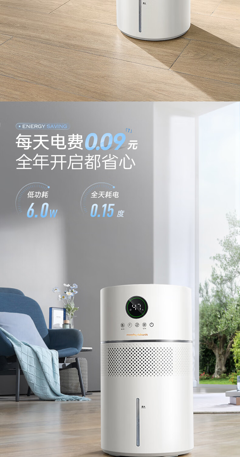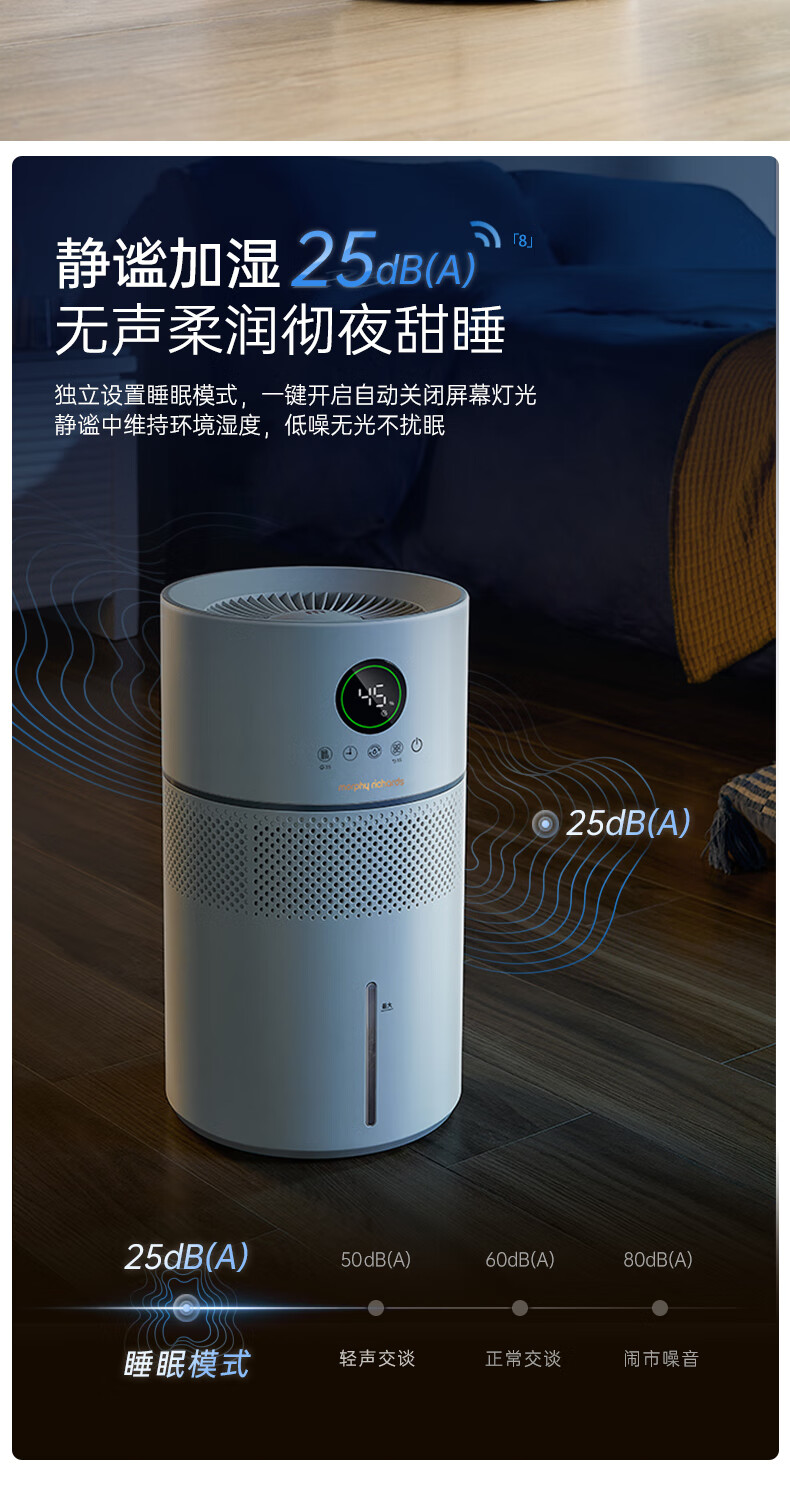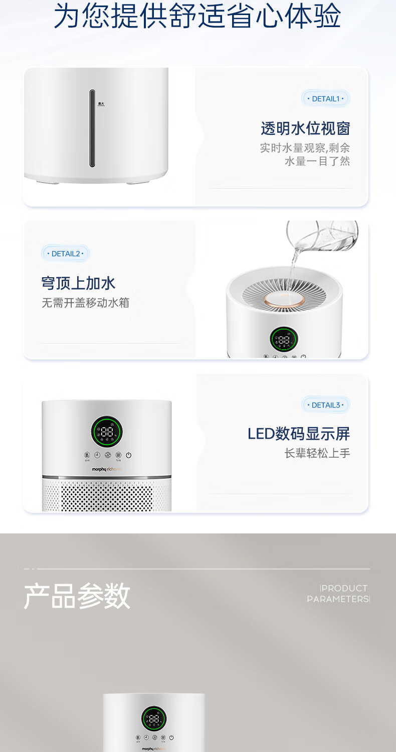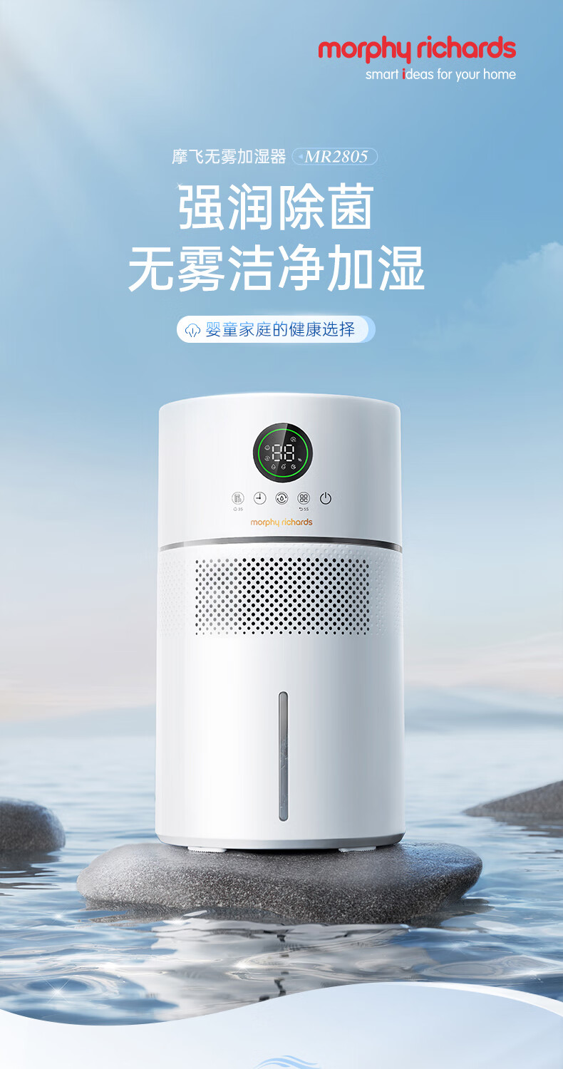摩飞电器(Morphyrichards)无雾加湿器卧室办公室母婴轻音除菌空气加湿器智能恒湿空调伴侣上加水MR2805 白色