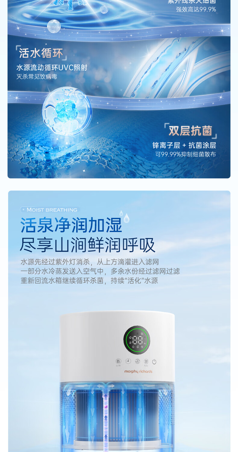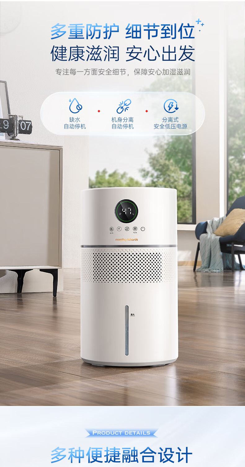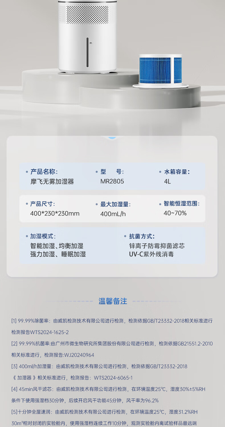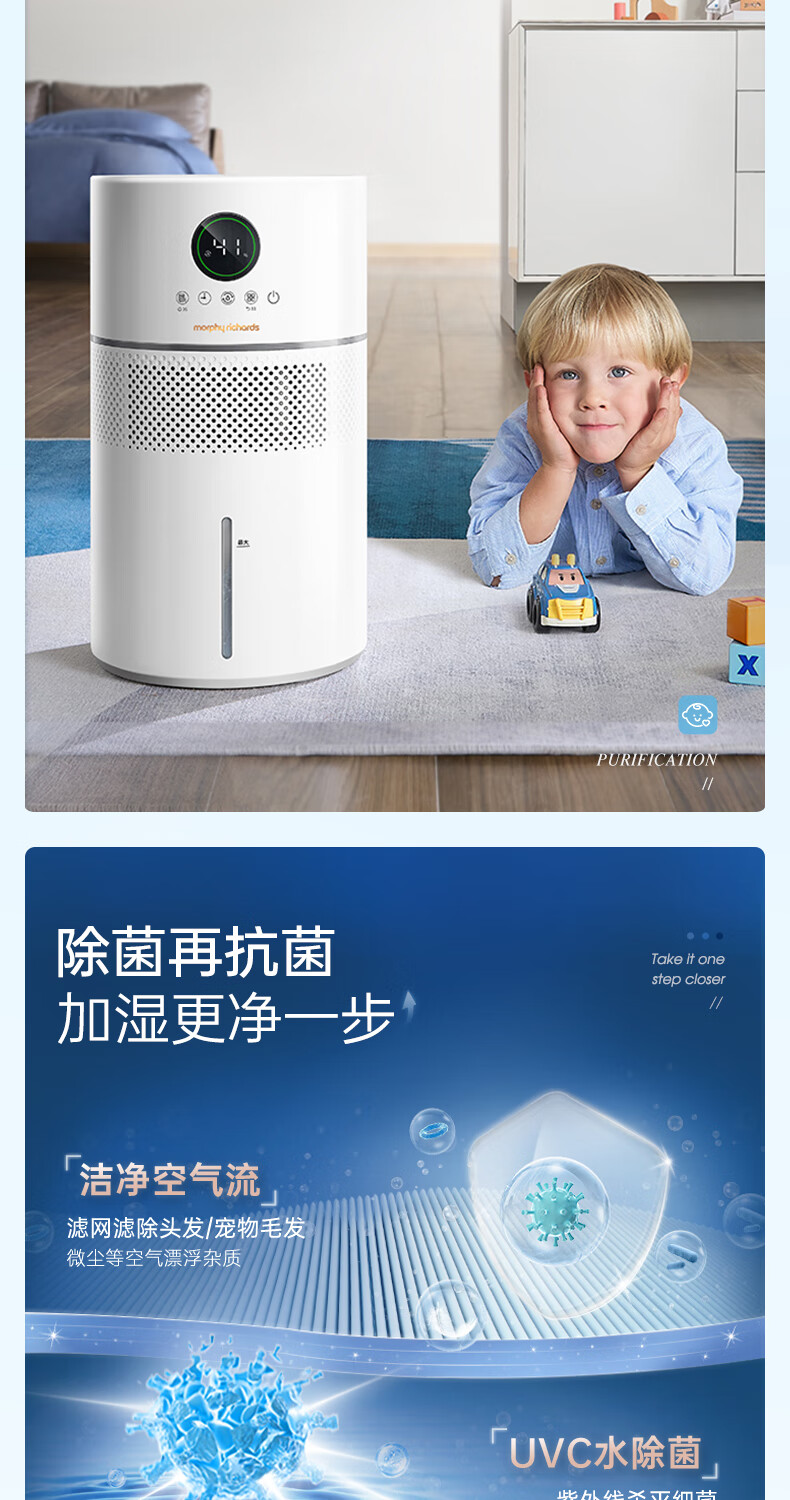 摩飞电器(Morphyrichards)无雾加湿器卧室办公室母婴轻音除菌空气加湿器智能恒湿空调伴侣上加水MR2805 白色