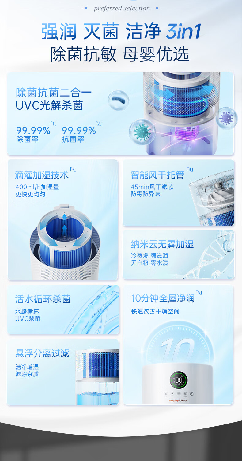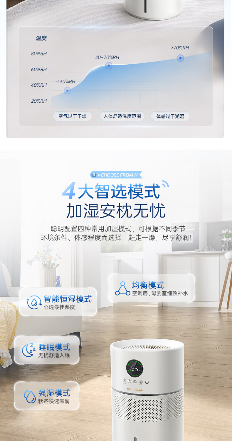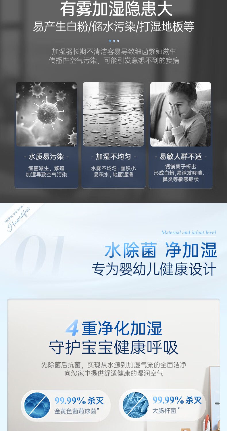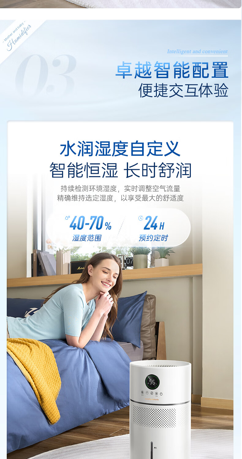 摩飞电器(Morphyrichards)无雾加湿器卧室办公室母婴轻音除菌空气加湿器智能恒湿空调伴侣上加水MR2805 白色