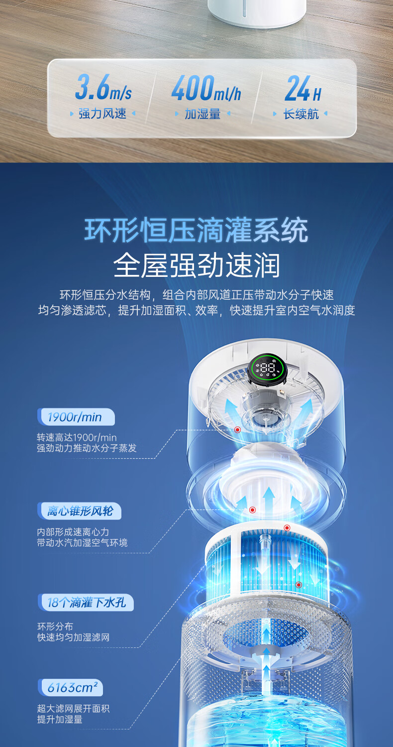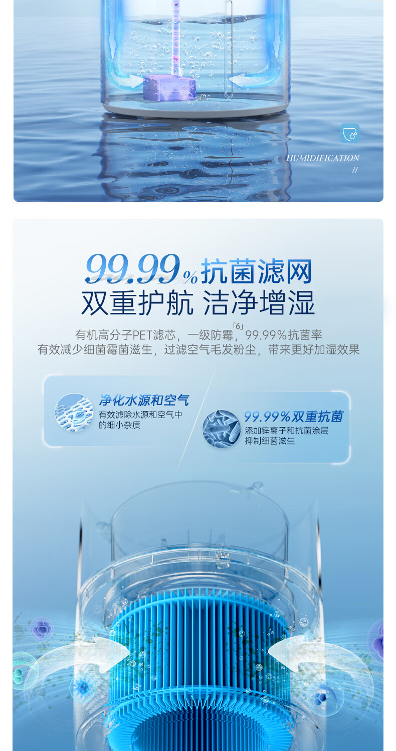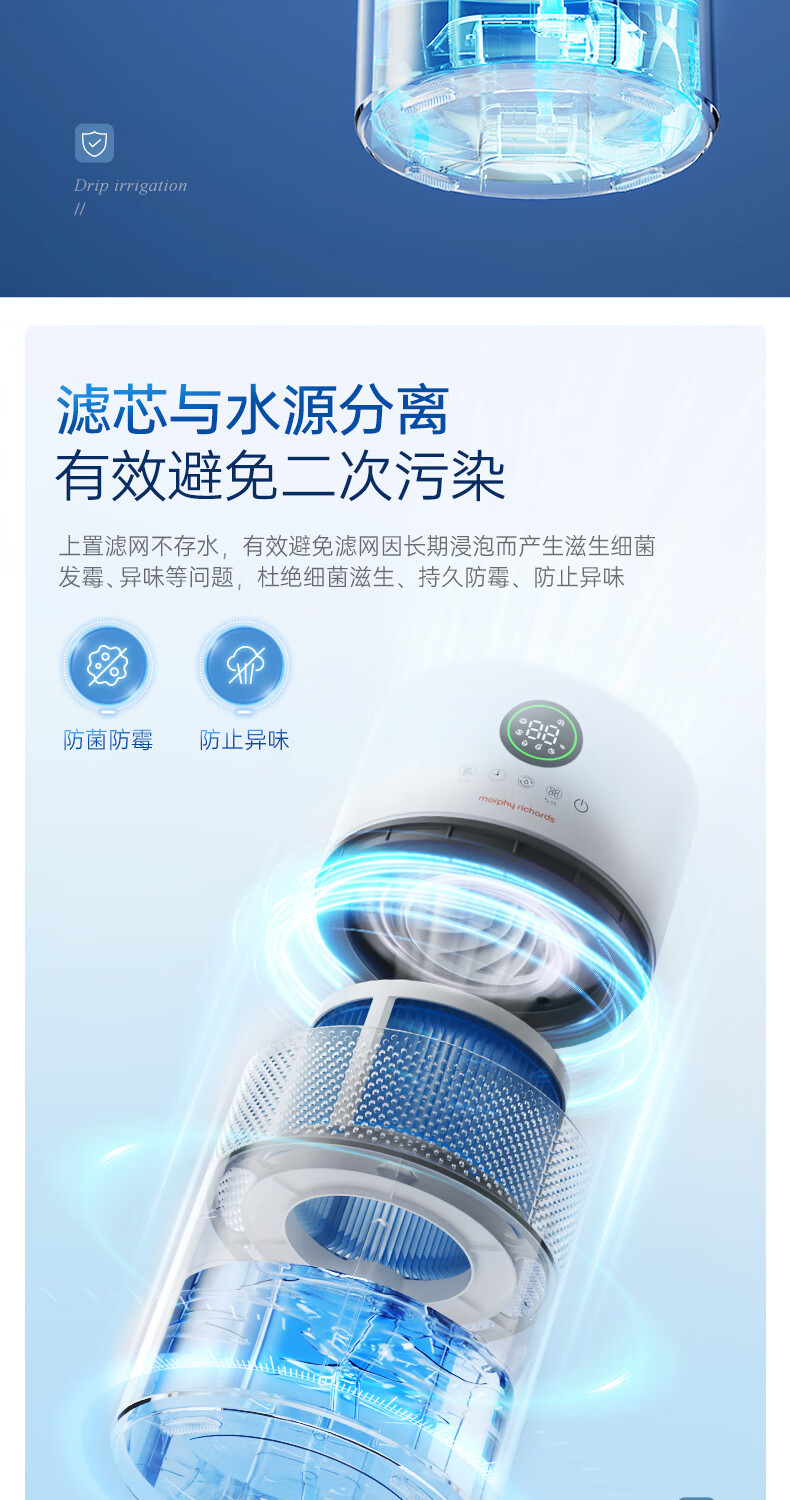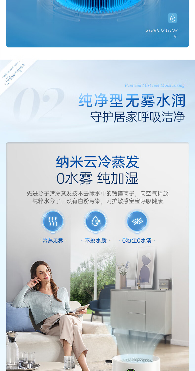 摩飞电器(Morphyrichards)无雾加湿器卧室办公室母婴轻音除菌空气加湿器智能恒湿空调伴侣上加水MR2805 白色