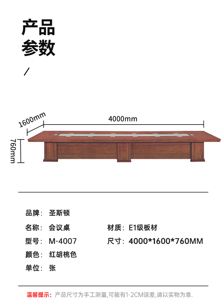 商品标题: 圣斯顿M-4007油漆会议桌4000*1600*760mm(张)红胡桃色