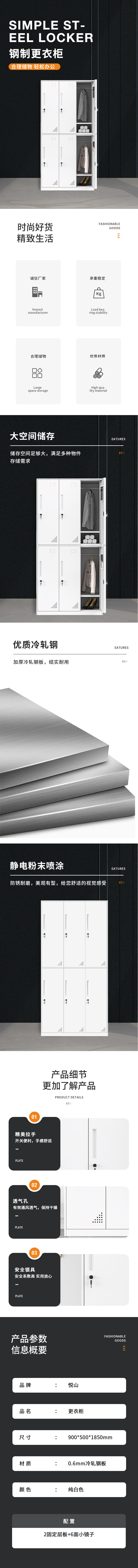悦山YSOA2fo6m-06B六门更衣柜900*500*1850mm纯白色(台)