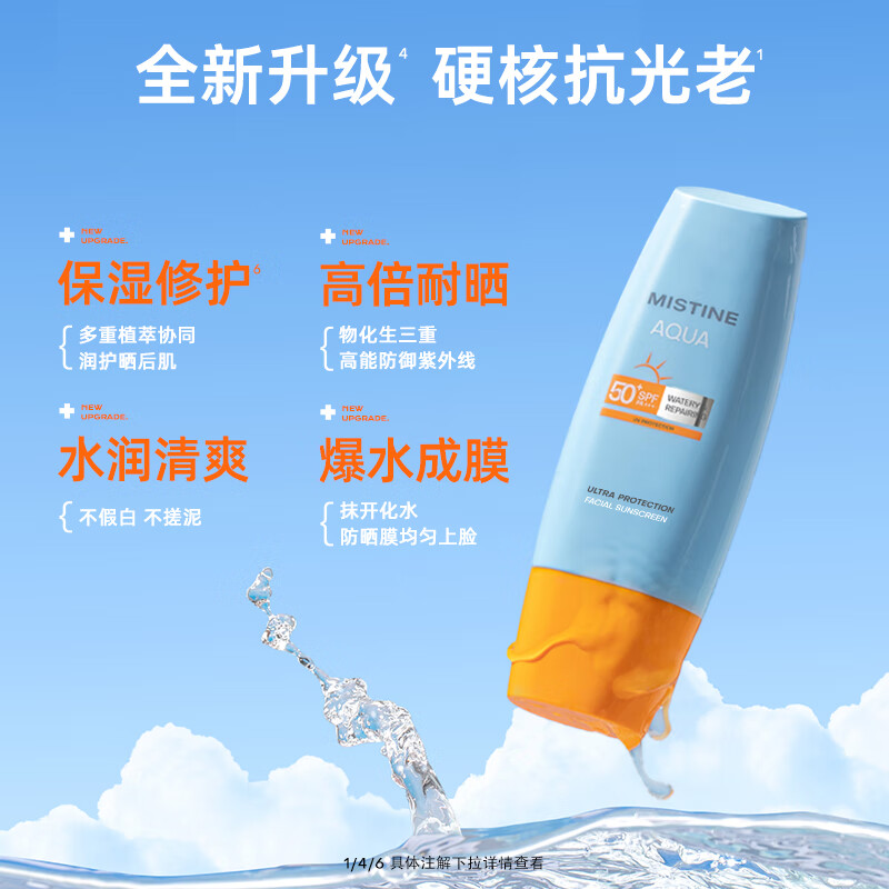 商品标题:蜜丝婷 水感修护防晒乳SPF50+ PA+++ (2023年版小黄帽)40ml(支)