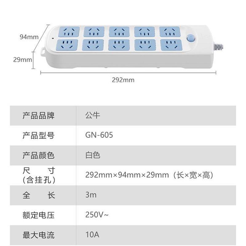 商品标题:公牛GN-605总控10位插排3米30只/箱 (单位:个)