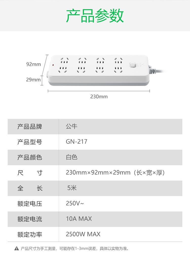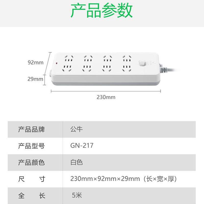 商品标题:公牛(BULL)GN-217总控8位插排5米 白色(个)