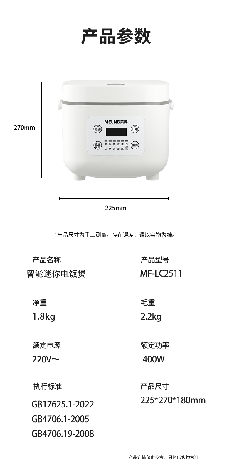 商品标题:美菱(MeiLing)MF-LC2511电饭煲(单位:台)