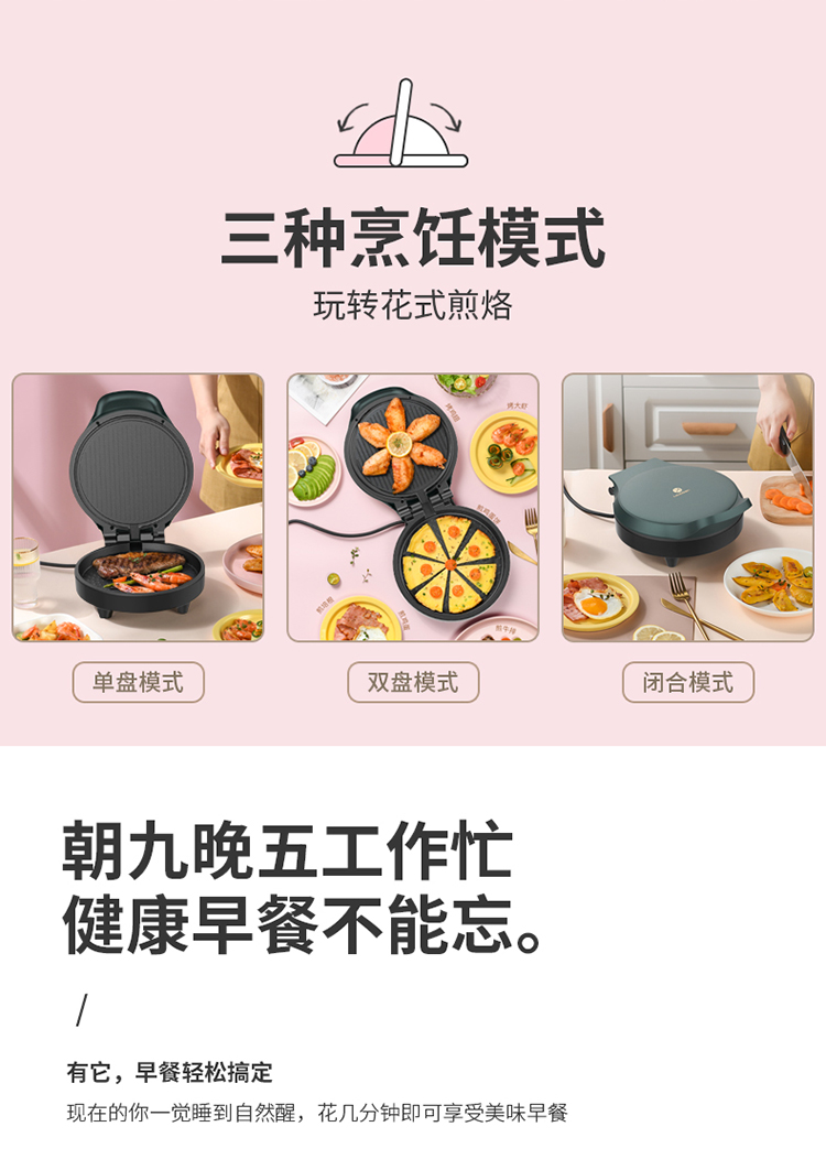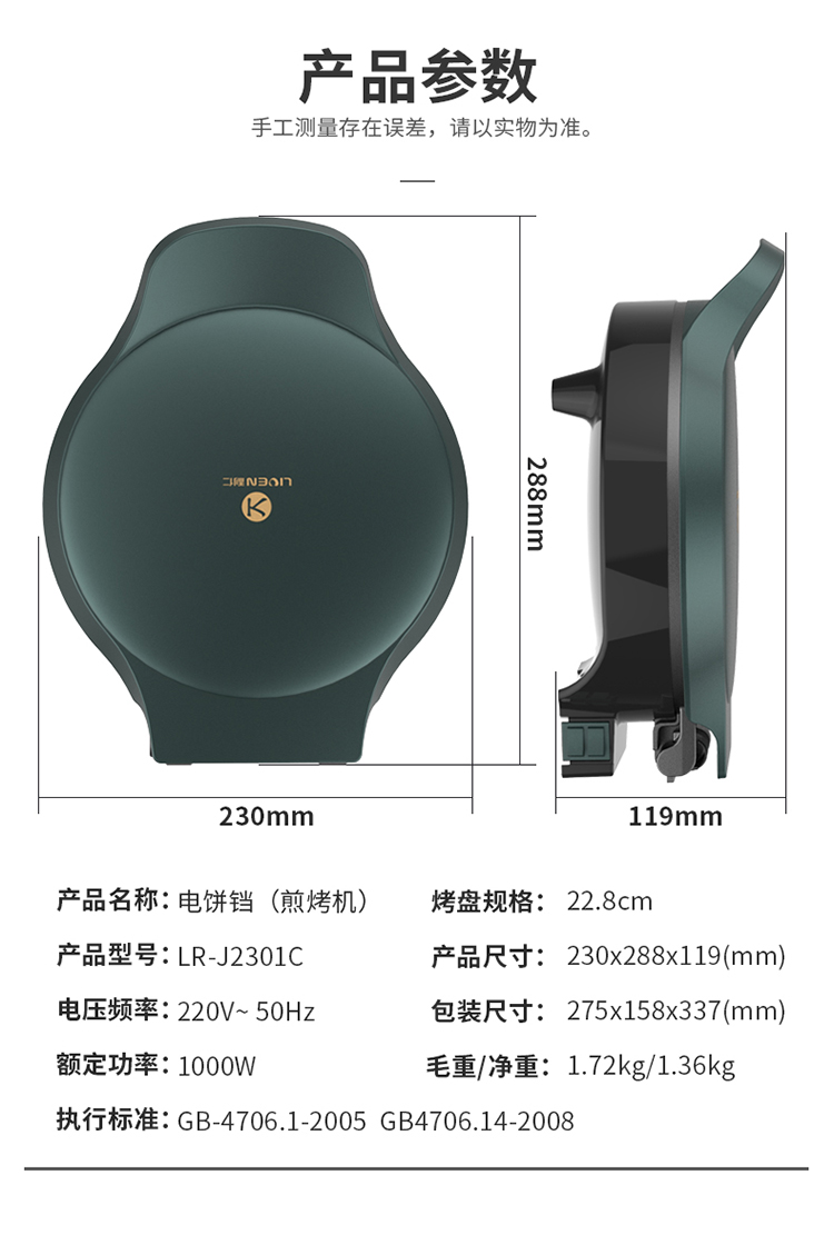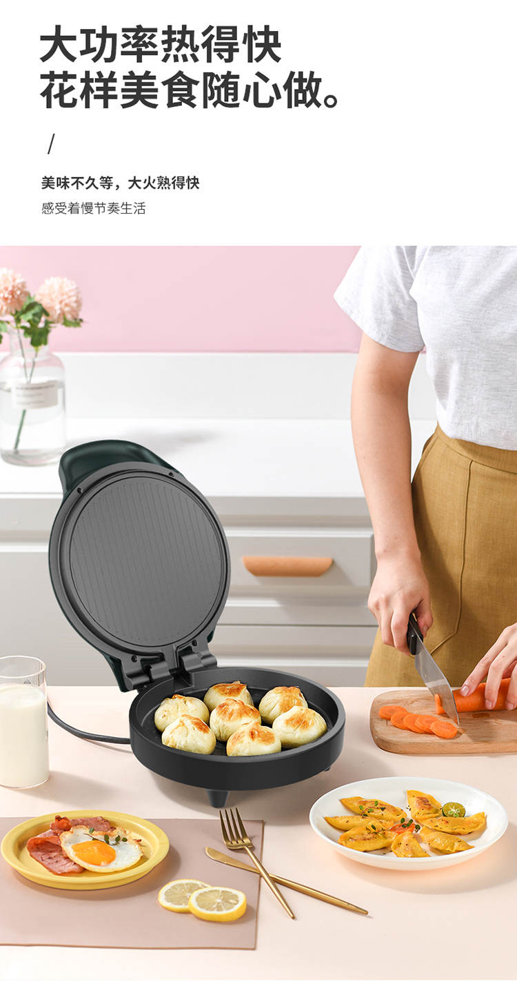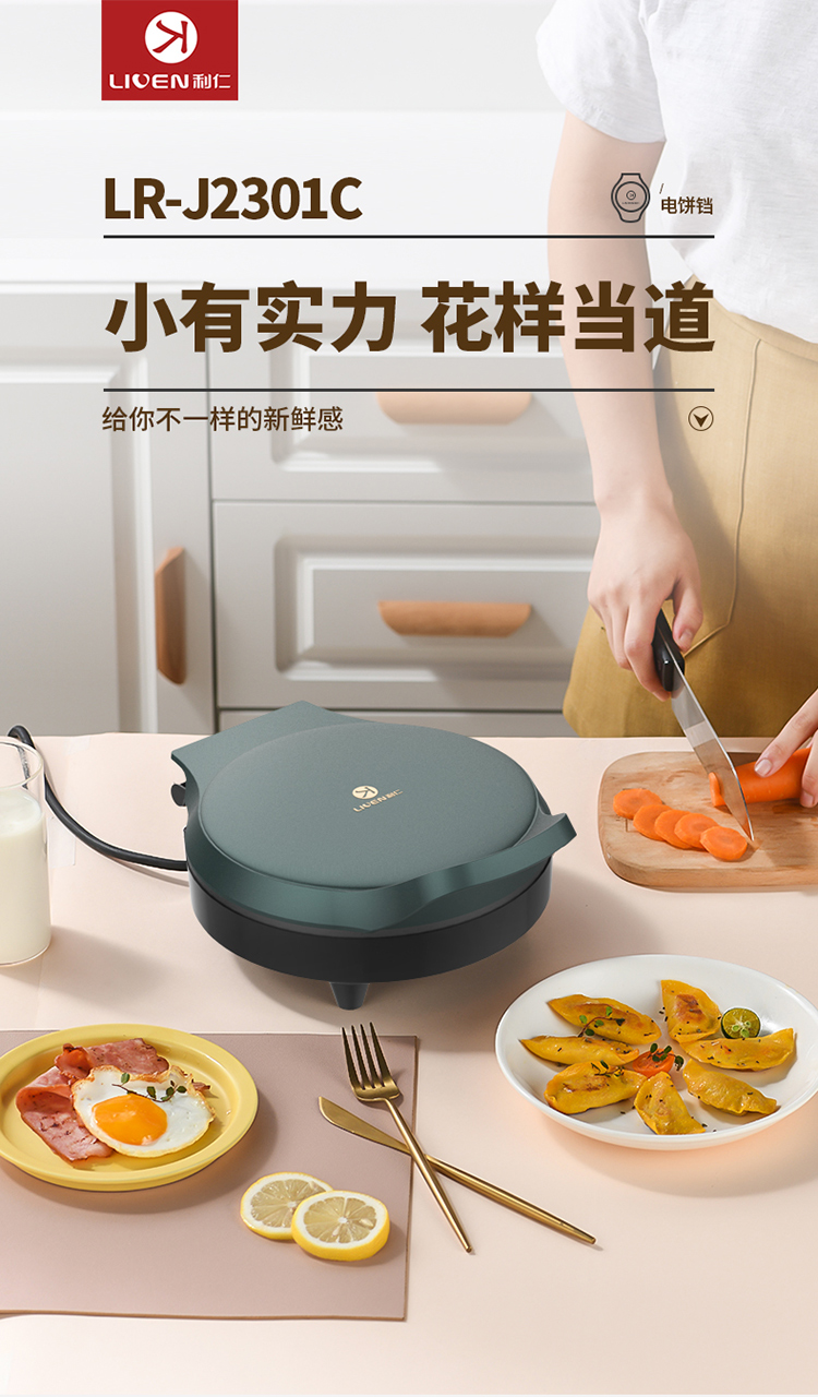 商品标题:Liven利仁 家用双面加热电饼铛1000w LR-J2301C 莫兰迪绿色 1000W (单位:台)