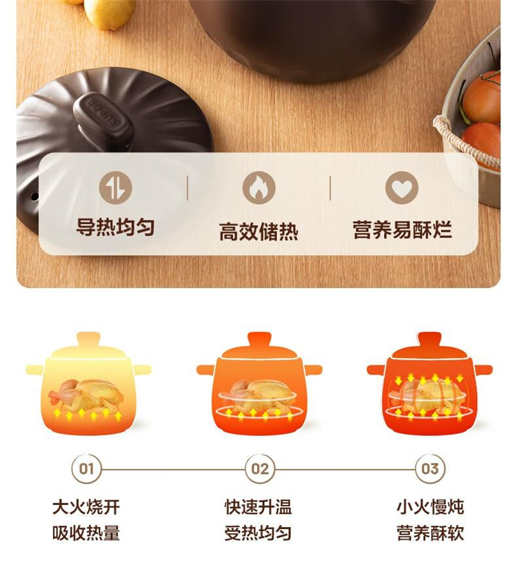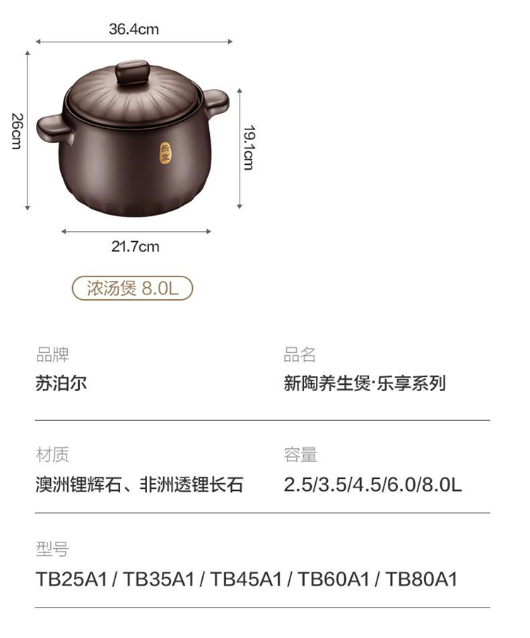 商品标题:苏泊尔SUPOR 砂锅TB60A1 煲汤陶瓷锅6L(单位:套)双矿石全加厚