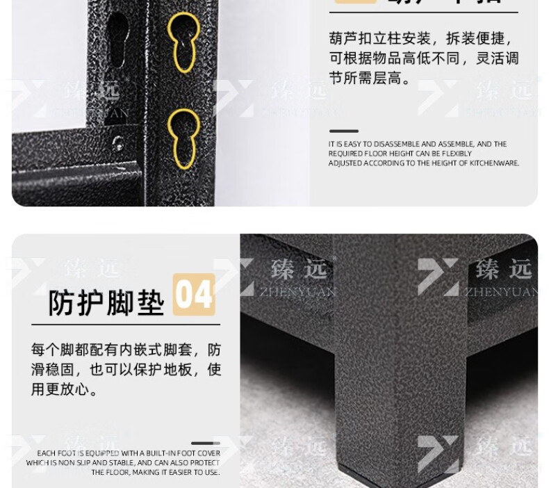 臻远ZY-ZWJ103 置物架落地收纳架仓库货架杂物整理架多层展示架铁架700*400*1830(组)