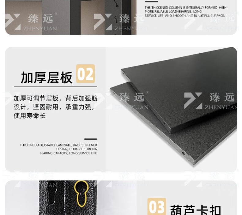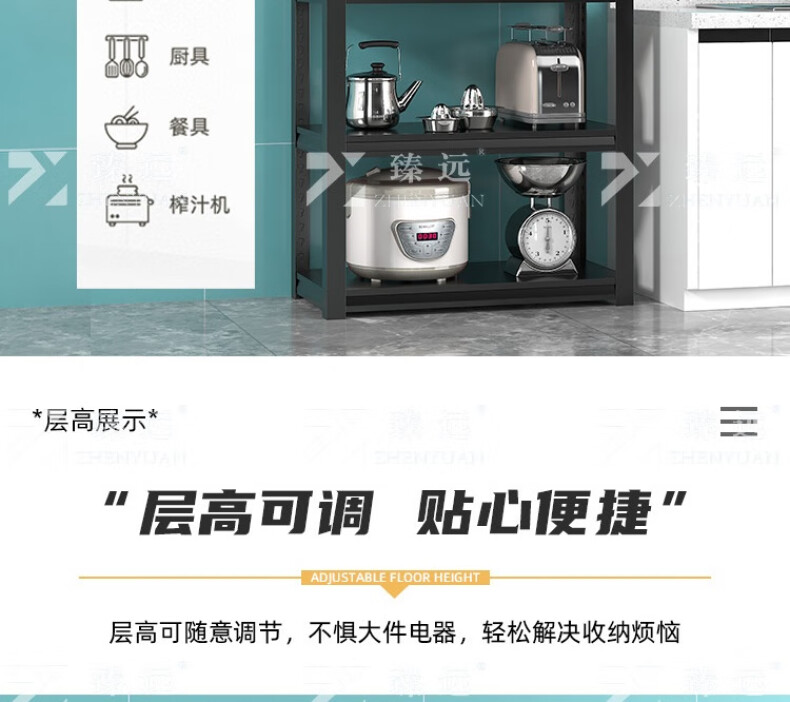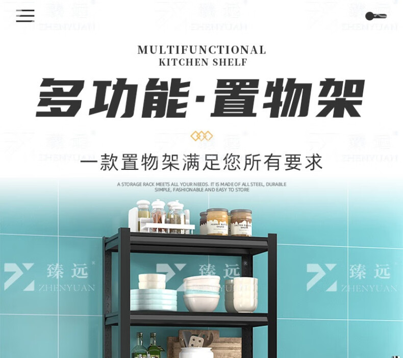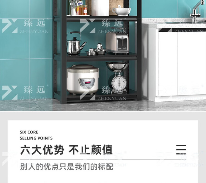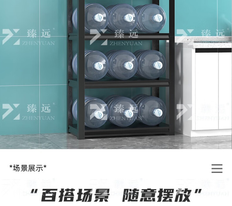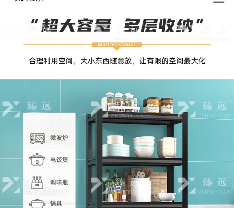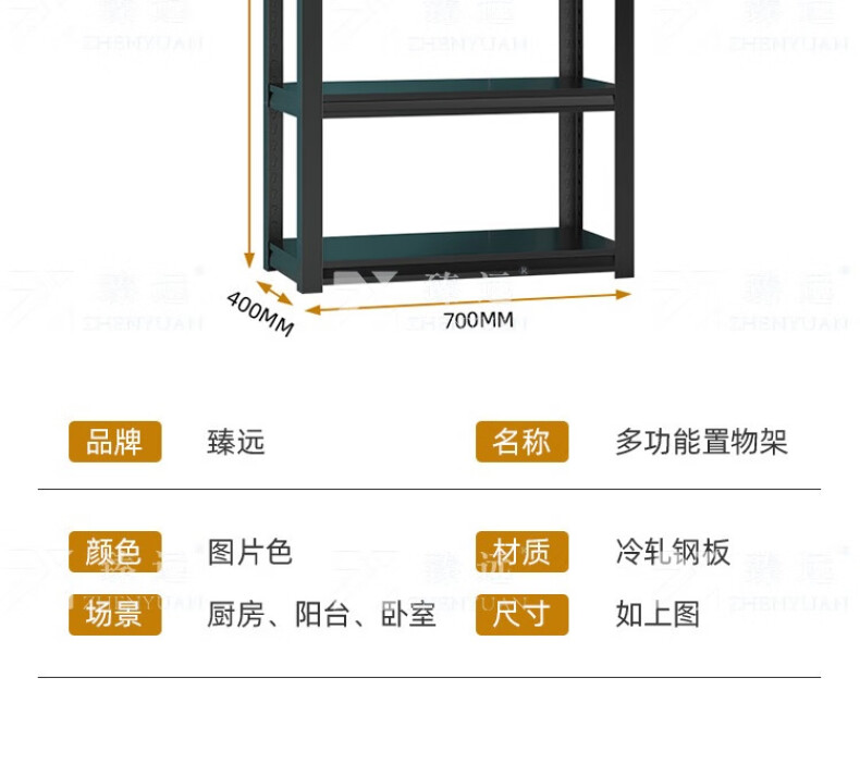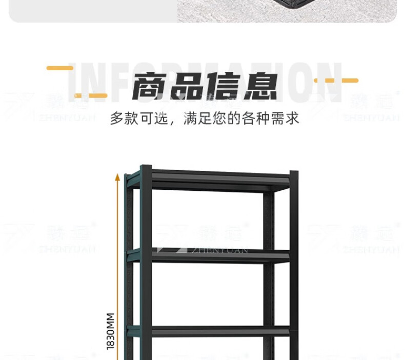 商品标题:臻远ZY-ZWJ103 置物架落地收纳架仓库货架杂物整理架多层展示架铁架700*400*1830(组)