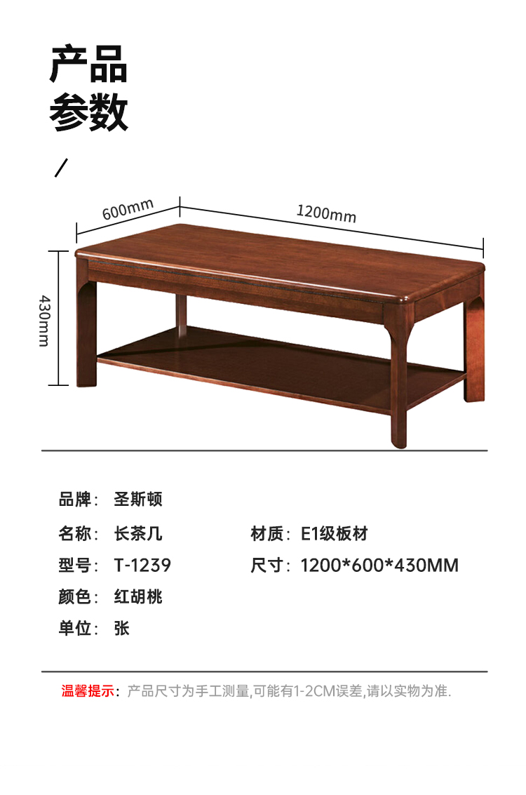 商品标题:圣斯顿T-1239油漆长茶几1200*600*430mm(张)红胡桃色