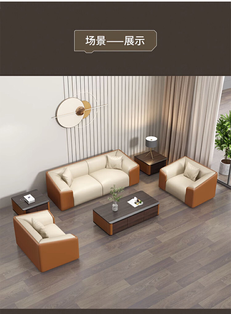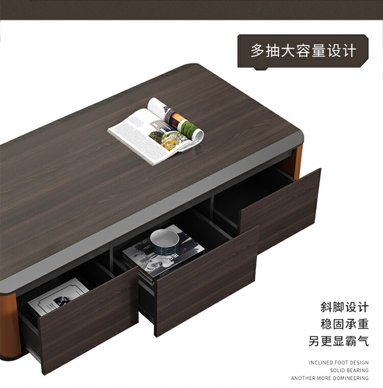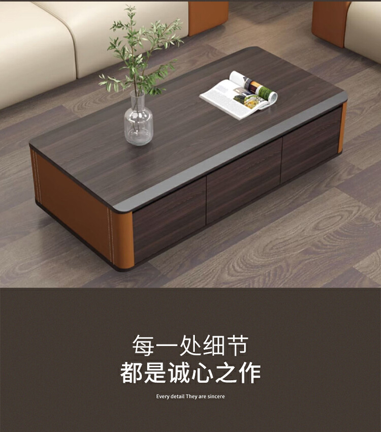圣斯顿S-QS11现代茶几1400*700*400mm(张)烟熏木+肤感灰+皮纹橙