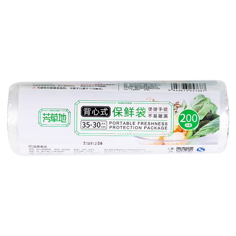 芳草地 3G5767 背心保鲜袋 大号 35*30cm 200个(卷)