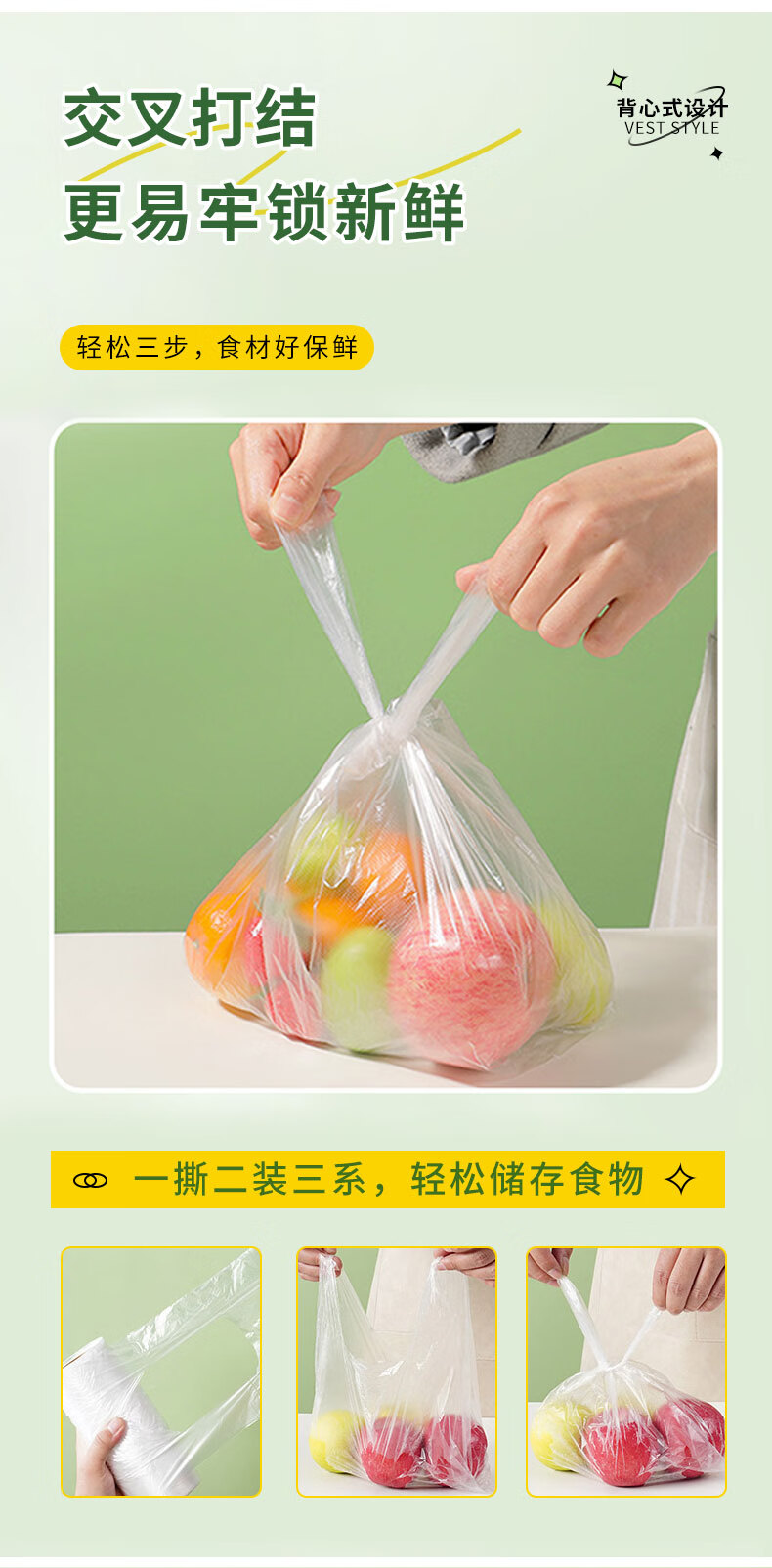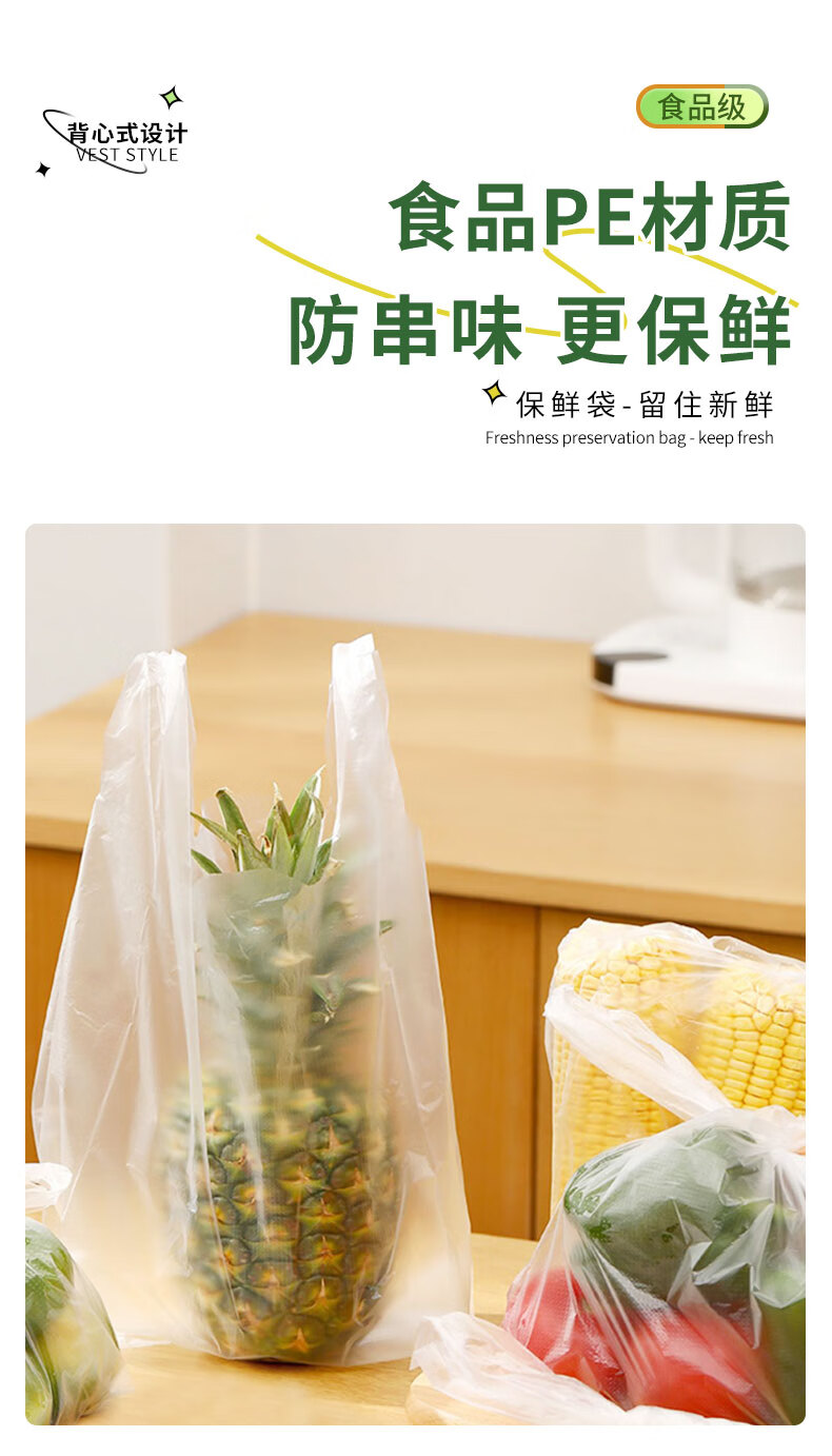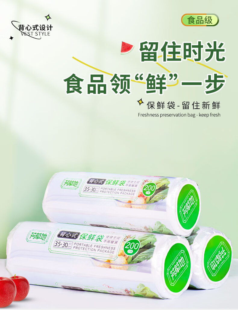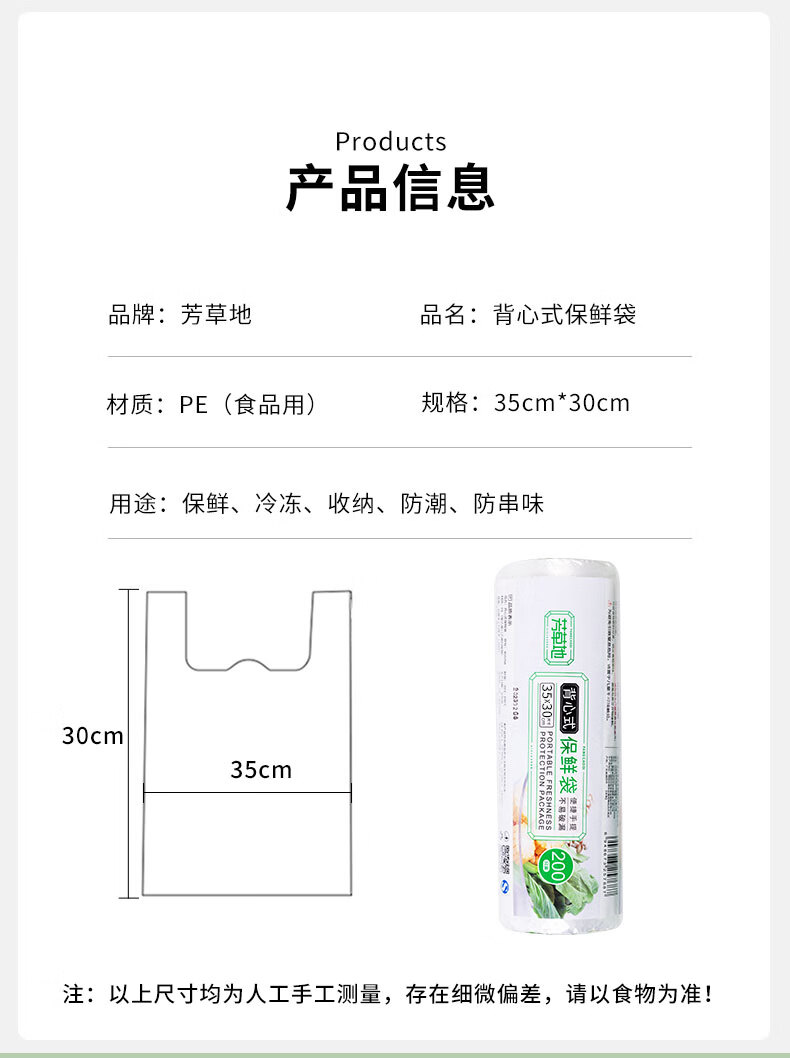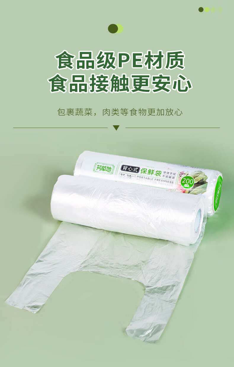 商品标题:芳草地背心保鲜袋200个大号35*30cm加厚食品收纳袋塑料袋手提打包袋