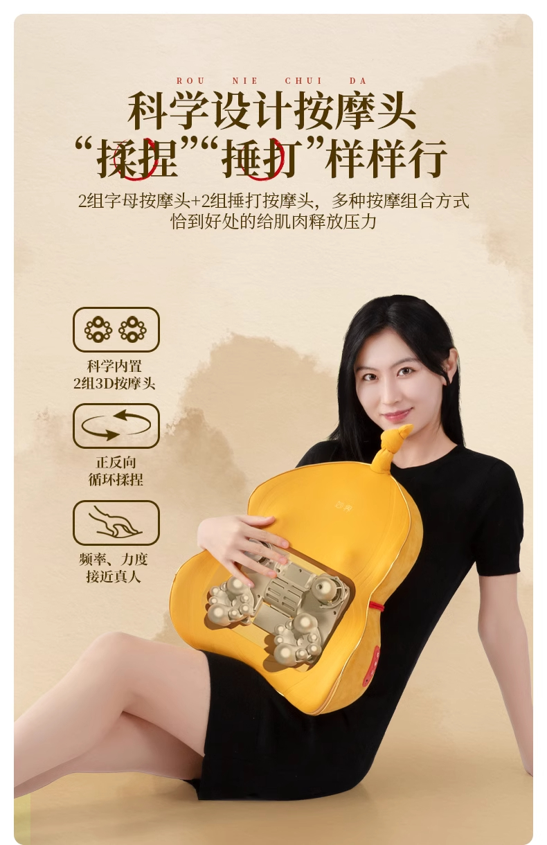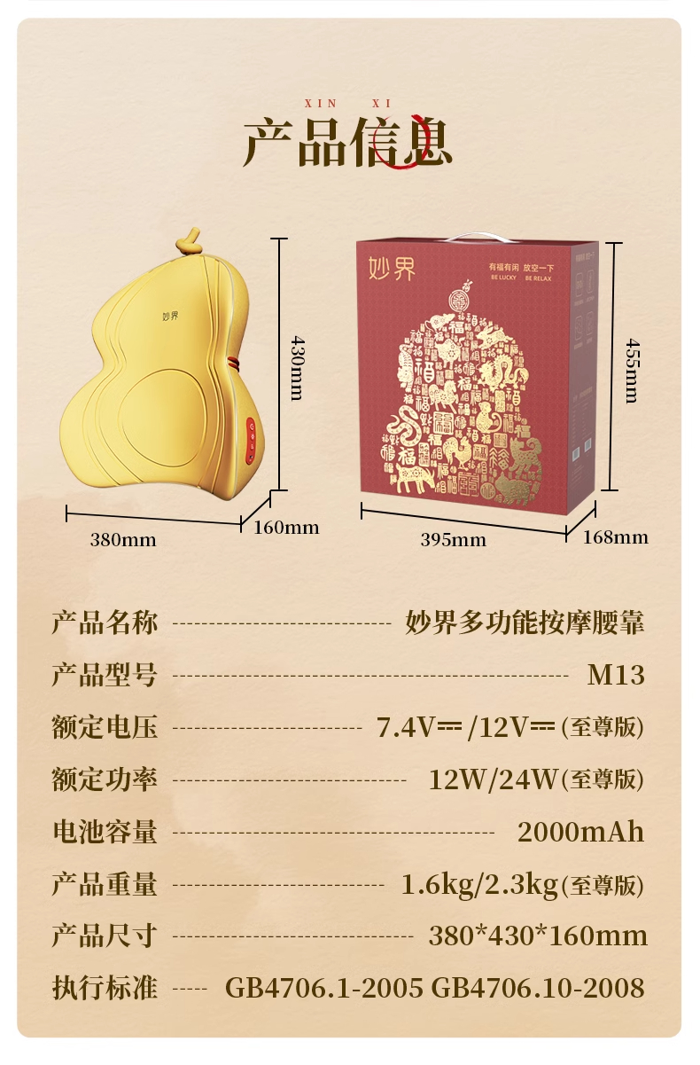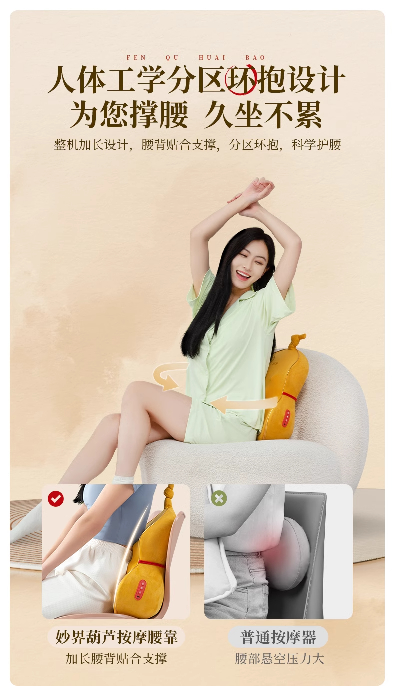 商品标题:妙界(MIAOJIE)M13葫芦腰背按摩仪揉捶一体缃叶黄普通版(单位:台)