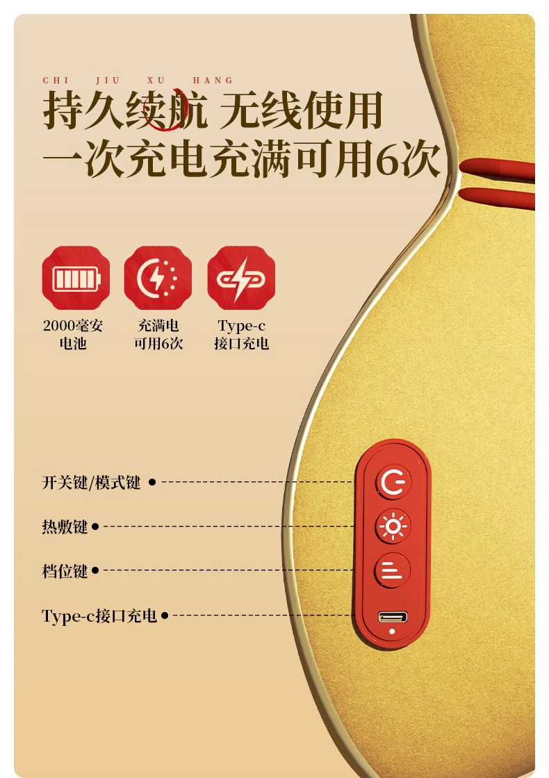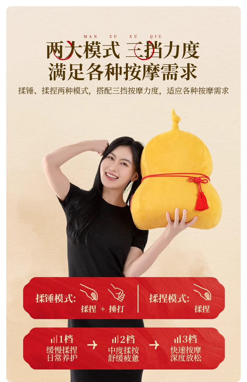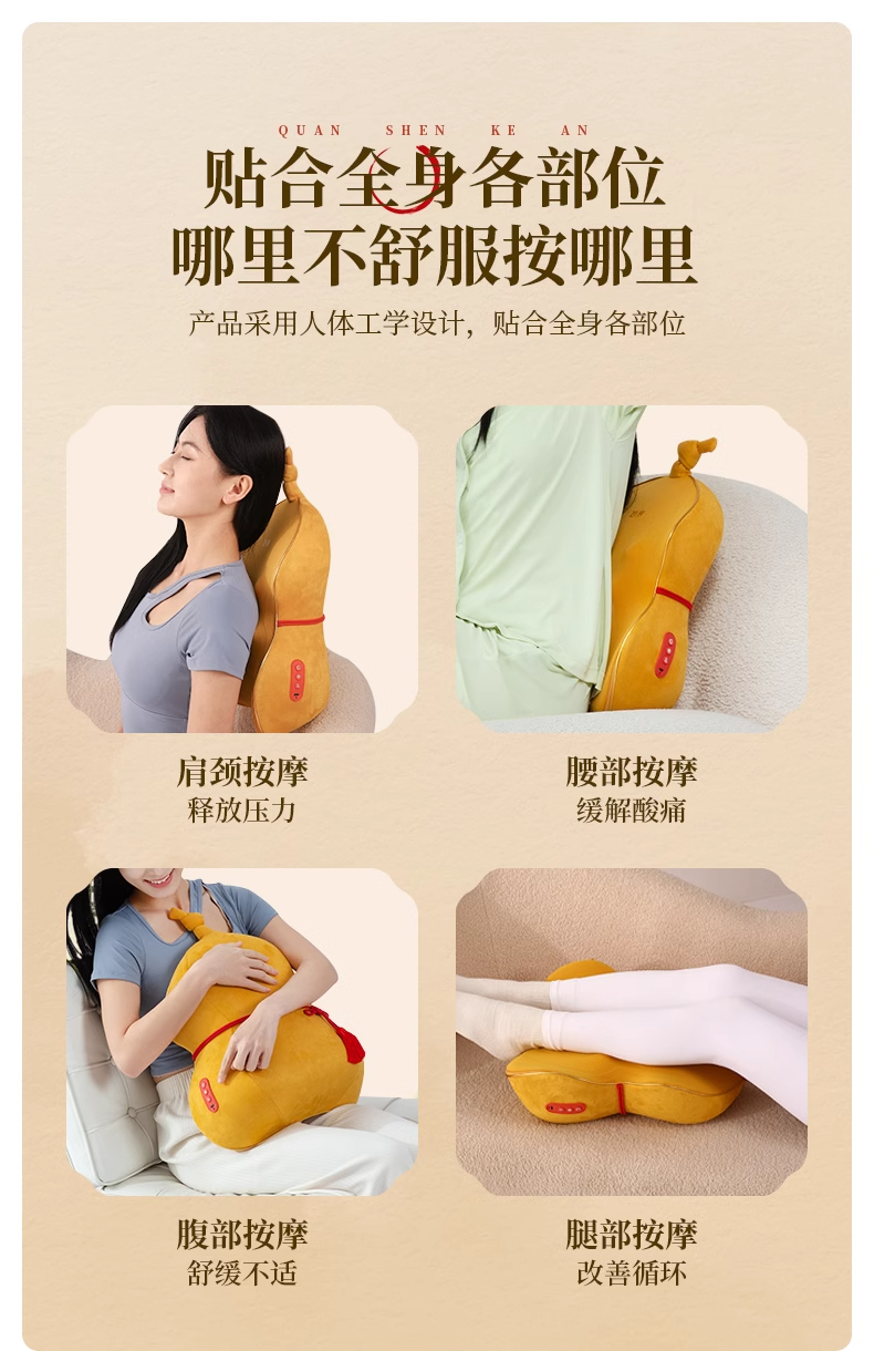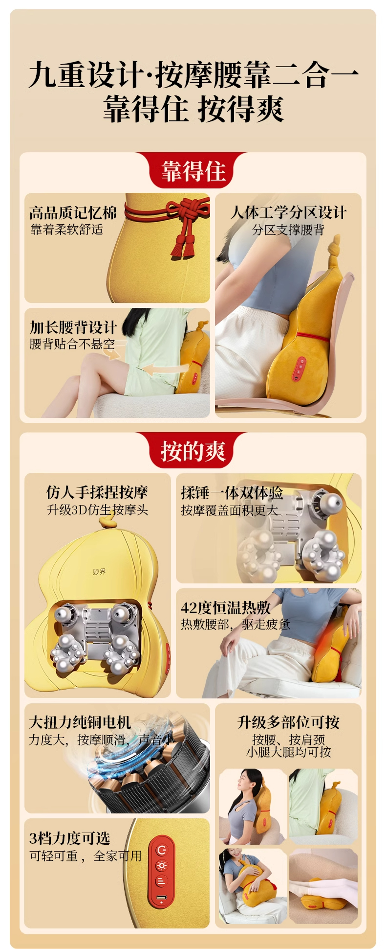 商品标题:妙界(MIAOJIE)M13葫芦腰背按摩仪揉捶一体缃叶黄普通版(单位:台)